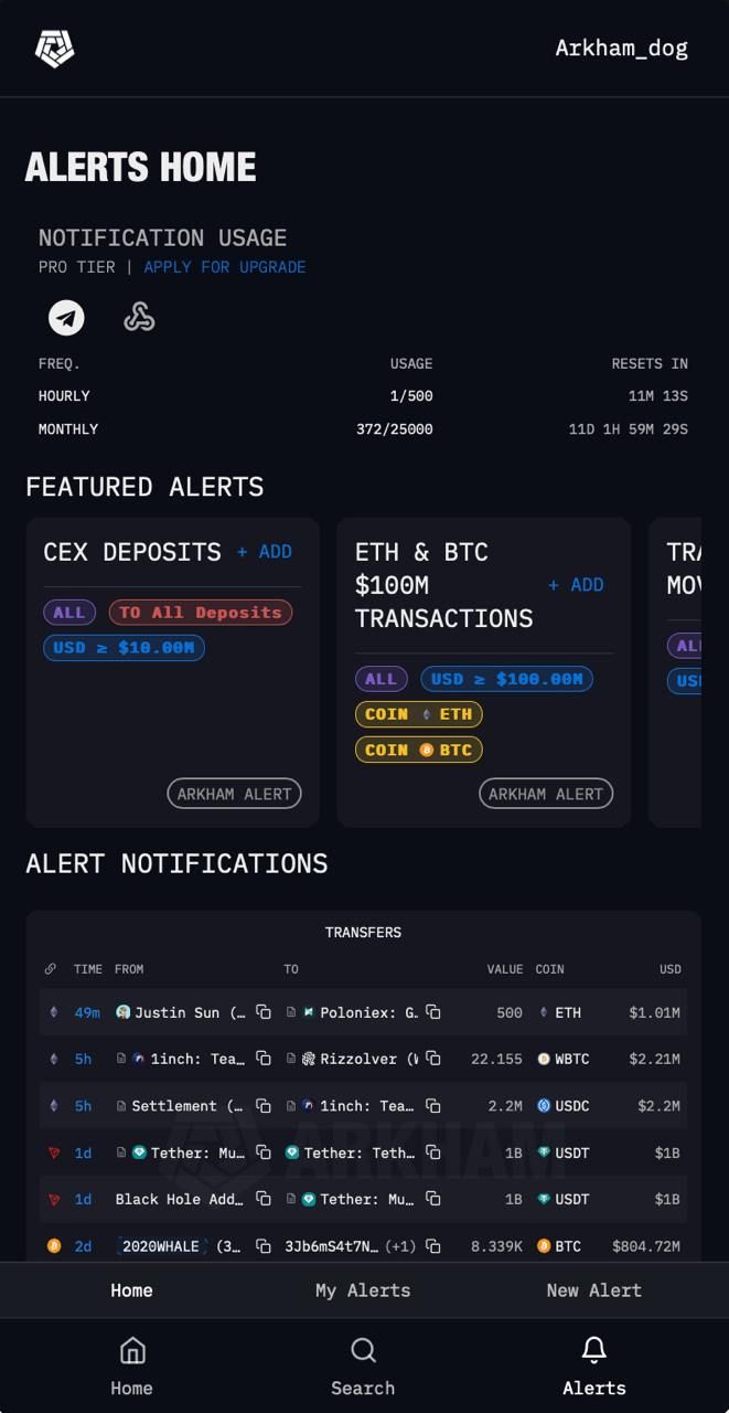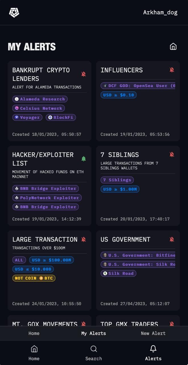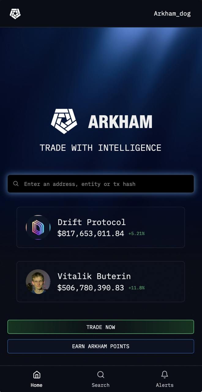 Выполните поиск в базе данных криптографических объектов Arkham по имени, социальному профилю, ENS, адресу блокчейна или хешу транзакции, чтобы узнать, какую криптовалюту они хранят. Установите оповещения о любой транзакции в цепочке. Узнайте, что покупают и продают ведущие трейдеры. Используйте Arkham Intel для проведения исследований, а затем используйте Arkham Exchange для удобной реализации своих торговых идей.