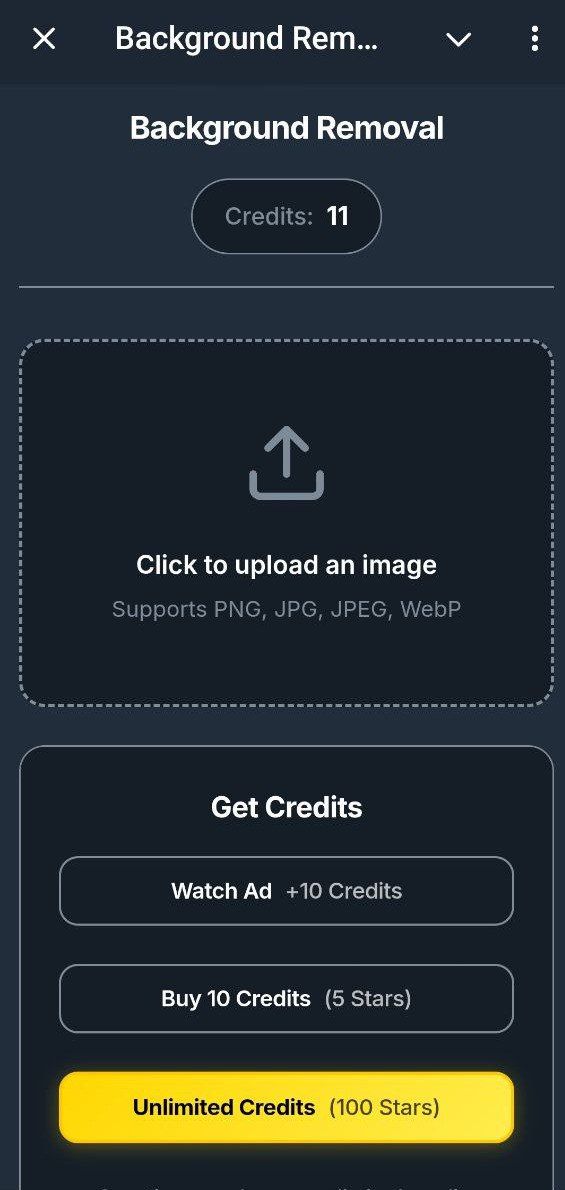 Простое удаление фона AI в Telegram. Удалите BG в 1 клик, полная история, конфиденциальность прежде всего. PNG, JPG, JPEG, WebP.