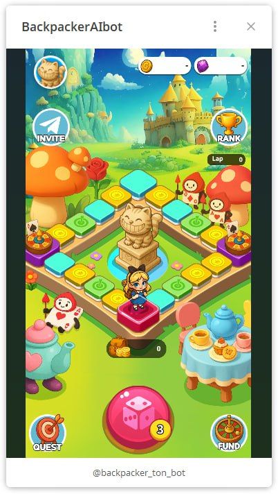 Backpacker — это игра, в которой вы бросаете кубик, чтобы переместить свой аватар, и зарабатываете очки, например $GOLD, которые можно обменять на монеты TON. Выполняйте ежедневные миссии, чтобы максимизировать свои награды за раздачу.