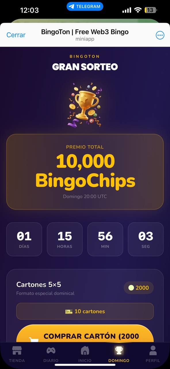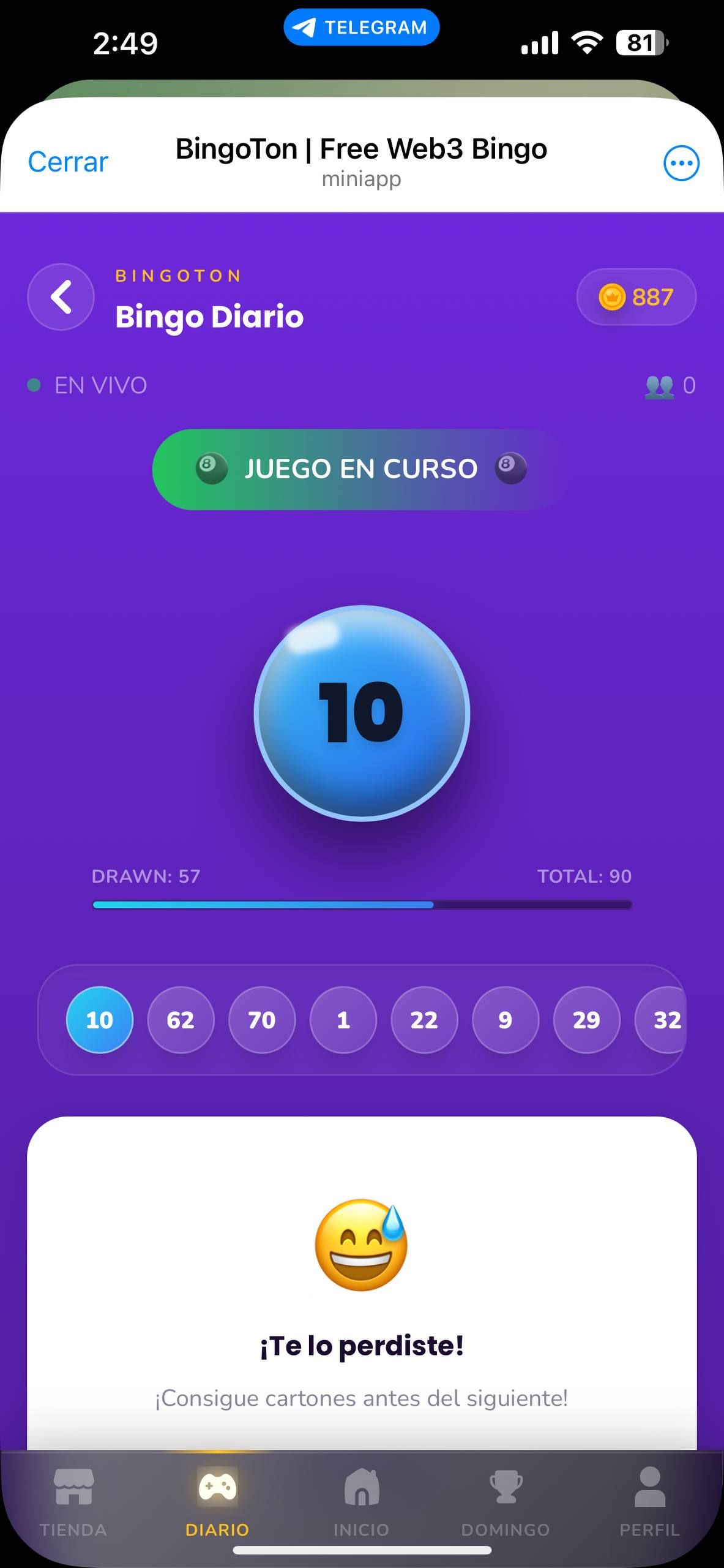 BingoTon представляет в Telegram живое многопользовательское бинго. Присоединяйтесь к новой игре каждые 15 минут, играйте против реальных людей и выигрывайте призы в реальном времени. Ежедневно получайте бесплатные карты бинго, переходите к следующему матчу и участвуйте в гонке, чтобы отмечать свои числа по мере их выпадения. Будьте первым, кто заполнит линию или вызовет полную бинго, чтобы мгновенно выиграть BingoChips. Каждое воскресенье ставки повышаются благодаря воскресному гала-турниру, главный приз которого забирает домой настоящие TON. Поднимайтесь по карьерной лестнице, выполняя ежедневные миссии, вращайте колесо удачи, чтобы получить бонусные награды, и приглашайте друзей, чтобы заработать еще больше. Депозит не требуется. Просто откройте BingoTon и играйте.