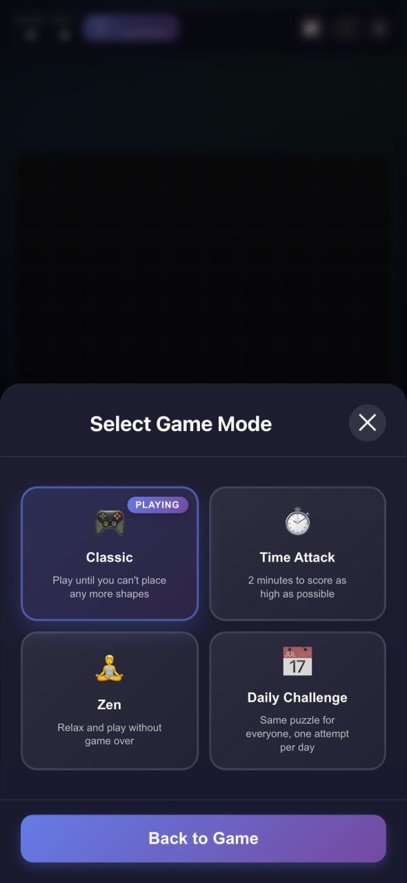 Размещайте фигуры на сетке 10х10, очищайте линии, используйте бустеры и зарабатывайте очки. Соревнуйтесь в еженедельной таблице лидеров и выполняйте квесты.