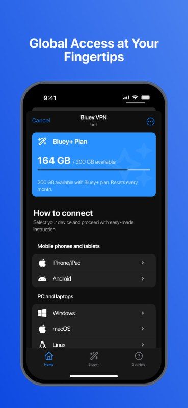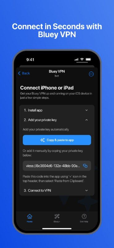 Bluey VPN — быстрый, безопасный и простой в использовании VPN с надежным шифрованием, глобальным доступом и молниеносной скоростью. Защитите свою конфиденциальность в общедоступном Wi-Fi или дома. Попробуйте бесплатно с ежемесячным трафиком 10 ГБ. Ваш путь к более безопасному и свободному Интернету. Начните сегодня!