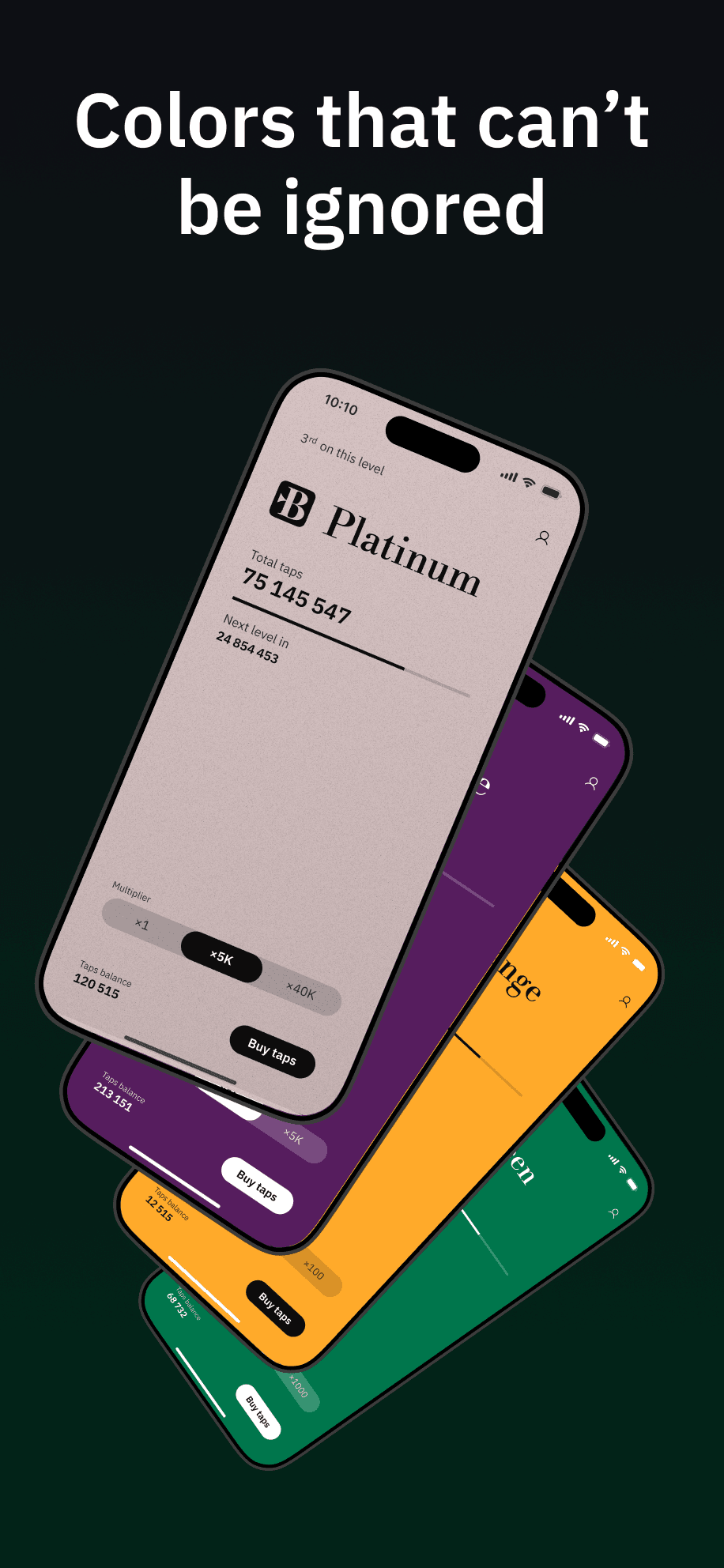 Поднимите свой социальный статус на новый уровень с помощью Bold. Купите краны и пройдите 10 уровней, каждый из которых меняет внешний вид приложения. Покажите это своим друзьям и докажите им, насколько вы богаты!