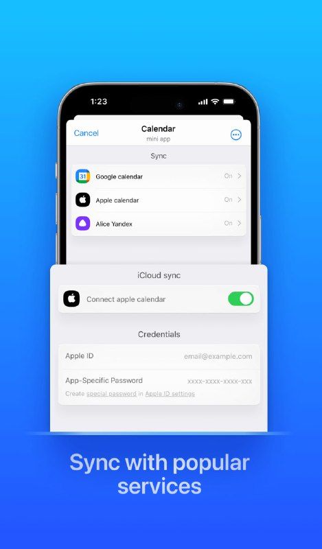 Синхронизация с Google, календарями Apple, Яндекс Алисой и другими сервисами, поддерживающими CalDAV, позволит вам объединить все в одном пространстве, и каждое утро вы будете получать план на день в Telegram.