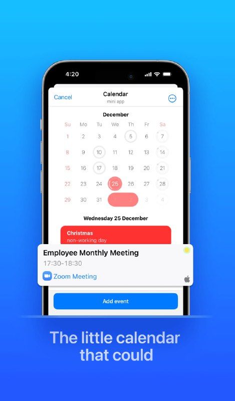 Мгновенное создание событий с помощью искусственного интеллекта! Просто отправьте скриншот/фото билета/афиши, документа или расскажите о своих планах в голосовом сообщении, и бот создаст событие в вашем календаре.