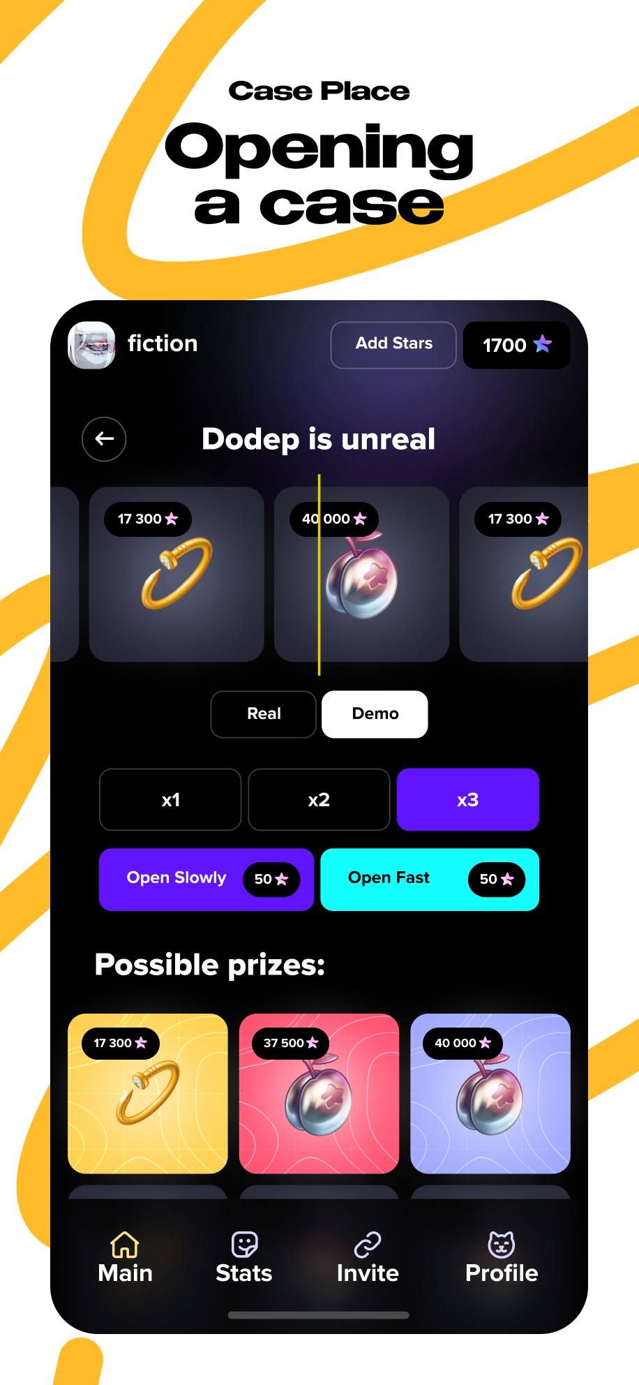 Case Place — это ваш шанс получить эксклюзивные и дорогие NFT прямо сейчас! Открывайте кейсы для звезд Telegram, испытайте удачу, запустив рулетку.