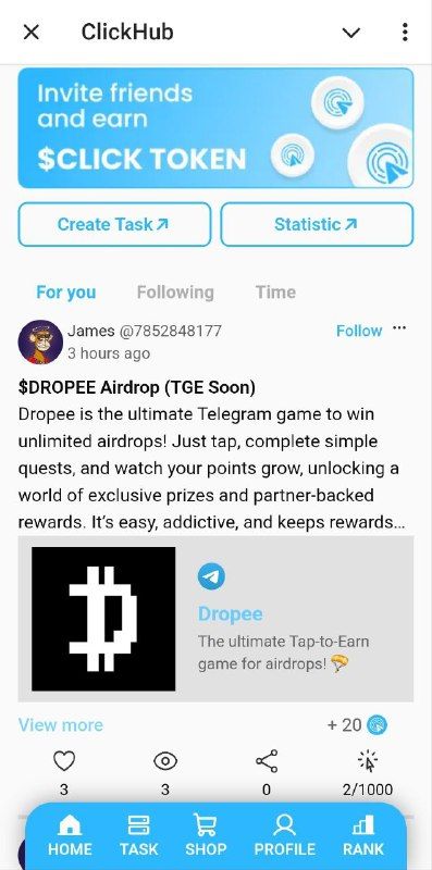 ClickHub — это маркетинговая социальная платформа нового поколения, где авторы могут платить вознаграждение за переходы по ссылкам, которые они хотят продвигать, или получать вознаграждение за переходы по ссылкам других людей.