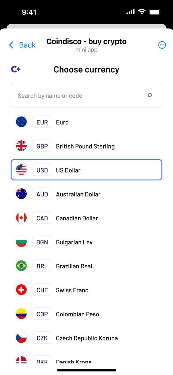 Coindisco — это мини-приложение Telegram, которое позволяет покупать и продавать криптовалюту в одном месте. Он объединяет местных и внешних поставщиков и отображает прозрачные предложения для вашего региона, валюты и способа оплаты. Это позволяет вам сравнивать варианты, не посещая несколько веб-сайтов или приложений. Вы можете приобрести TON, USDT, BTC, ETH и многие другие активы в разных сетях, используя банковские карты, переводы и местные способы оплаты, если они доступны. Coindisco четко отображает цены и комиссии каждого поставщика, чтобы вы могли выбрать вариант, который подходит именно вам. Созданная в сотрудничестве с авторитетными отраслевыми партнерами, Coindisco обеспечивает надежный и безопасный способ перехода между фиатными и криптовалютными транзакциями непосредственно внутри Telegram.