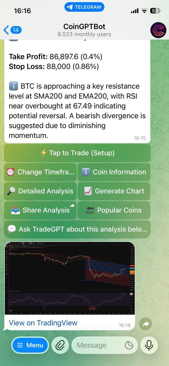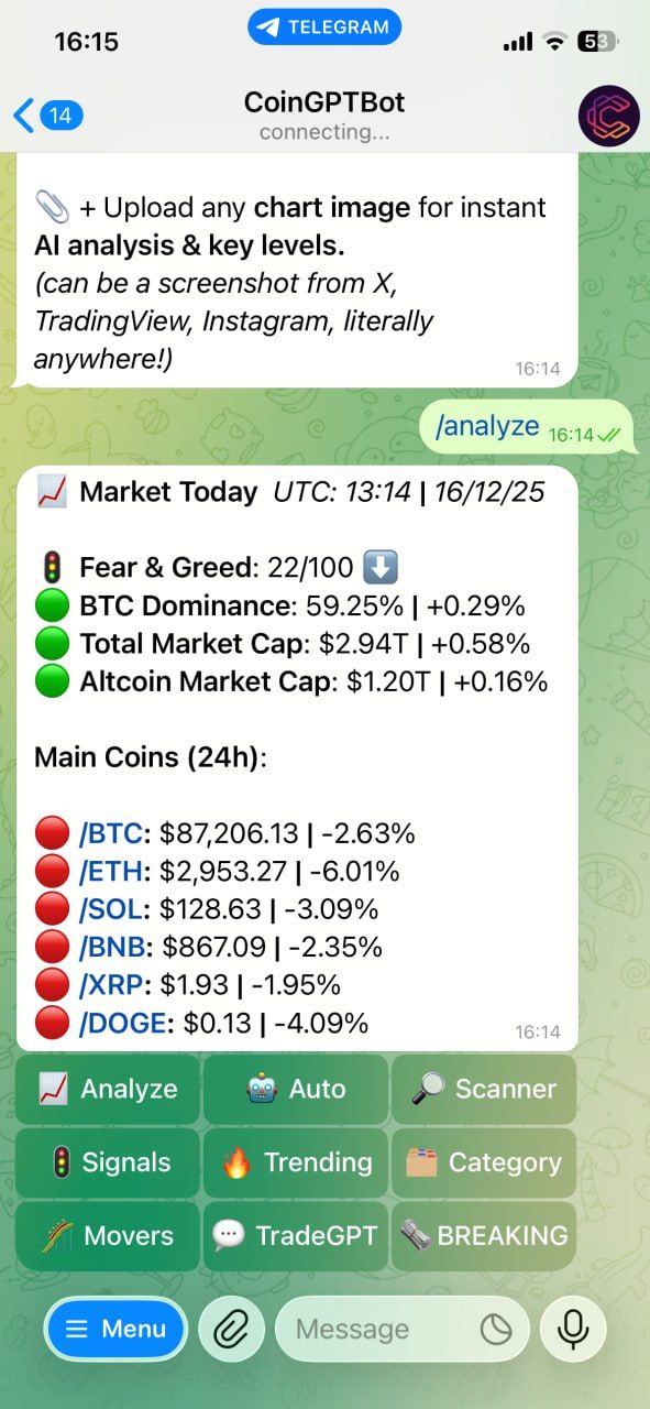 CoinGPT использует возможности технологии OpenAI для анализа данных в реальном времени по любой криптовалюте и таймфрейму, предоставляя четкие сигналы покупки/продажи, углубленный анализ и удобную автоматизацию торговли. Будьте впереди рынка с CoinGPT и никогда не упускайте возможности.