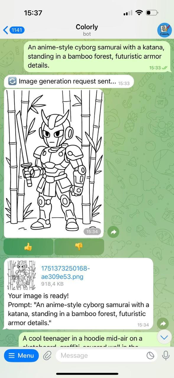 Превратите любую фотографию в уникальную раскраску с помощью Colorly! Просто загрузите свою фотографию, и ИИ преобразит ее. Вы также можете раскрыть свой творческий потенциал, создавая совершенно новые раскраски из текстового описания. Вместо просмотра бесконечных галерей теперь вы можете создать именно ту картинку, которую задумали.