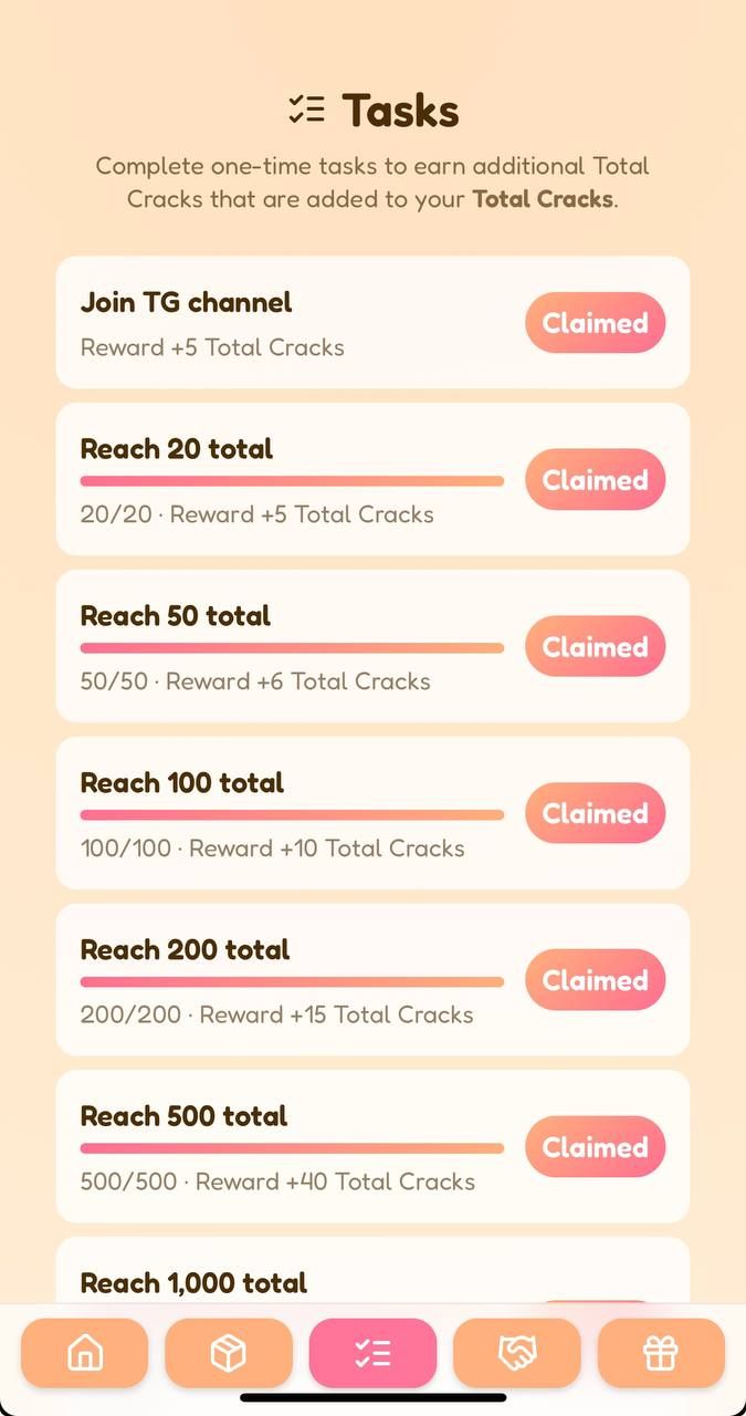 Простая и полезная игра с печеньем с предсказаниями, в которой вы каждый день взламываете печенье, собираете уникальные состояния, строите серии и поднимаетесь в таблице лидеров. Ежедневно зарабатывайте бесплатные кряки, выполняйте задания, открывайте новые этапы и соревнуйтесь с игроками примерно вашего ранга. Каждое печенье содержит состояние различной редкости, которое вы можете собрать или сжечь, чтобы получить дополнительные награды. Отслеживайте свой прогресс, повышайте свой рейтинг и узнайте, как далеко вы сможете зайти. Идеально подходит для быстрых ежедневных игровых сессий и долгосрочного прогресса.