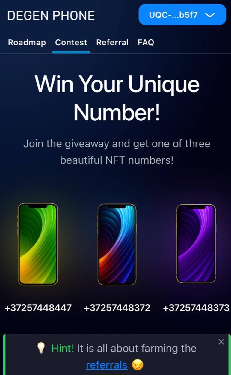 DegenPhone — это собственное Web3-приложение, которое позволяет вам владеть и использовать реальные номера мобильных телефонов в качестве NFT. Каждый номер, поддерживаемый eSIM уровня 1, дает вам безопасный доступ к SMS (а вскоре и к звонкам) прямо из приложения — без контрактов и без KYC. Используйте его, торгуйте или интегрируйте в агенты искусственного интеллекта и рабочие процессы в цепочке. Создан на базе TON для обеспечения конфиденциальности, портативности и истинного владения.