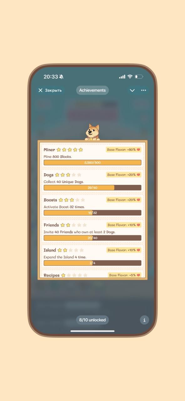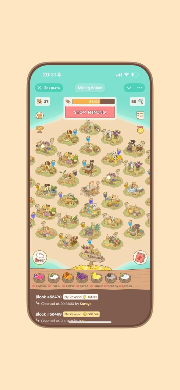 DOGES — это игра о майнинге. Стройте объекты, собирайте забавных собак, готовьте смузи и зарабатывайте жетоны $DOGES. Количество токенов ограничено, и после завершения майнинга они будут распределены между майнерами в блокчейне TON.