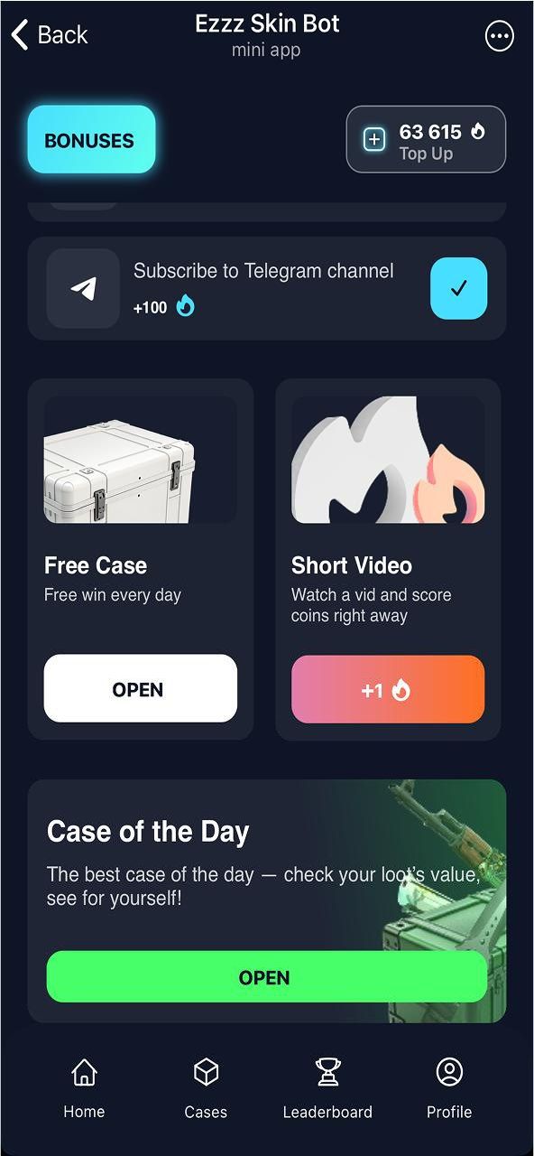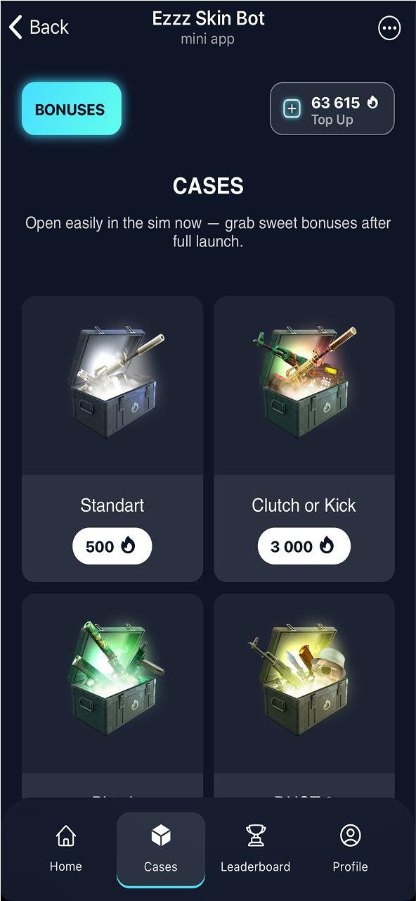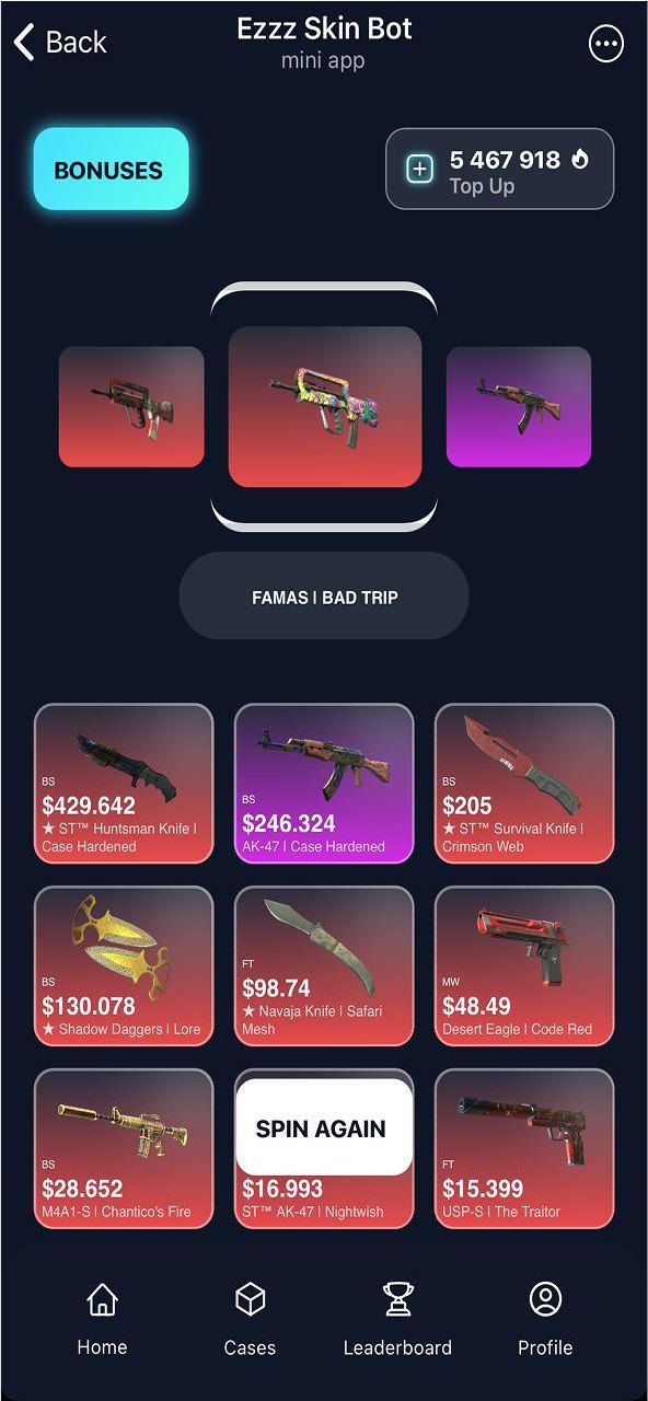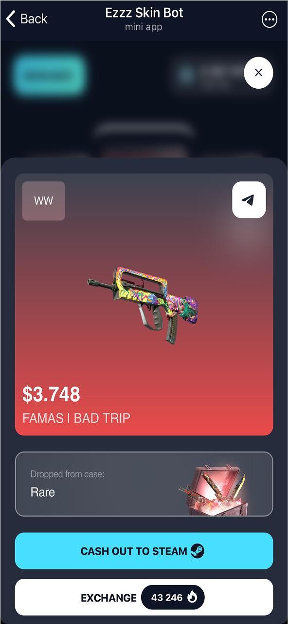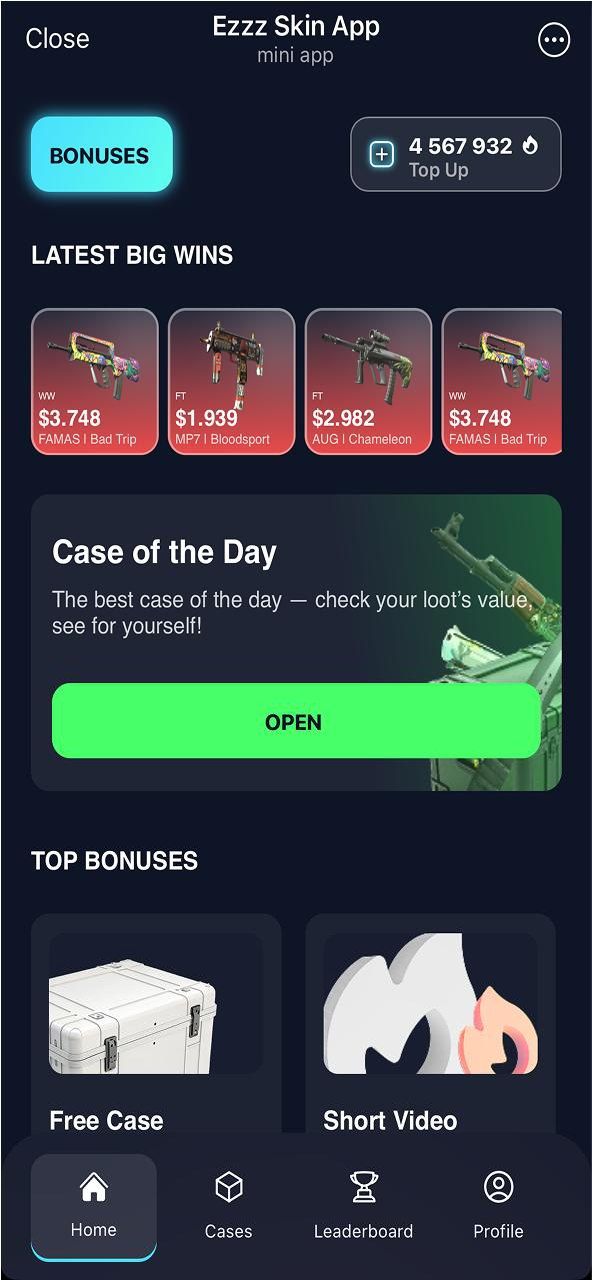 Ezzz Skin — открывайте кейсы CS2 и выигрывайте безумные скины прямо в Telegram.