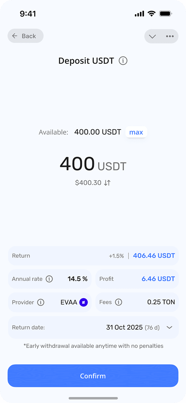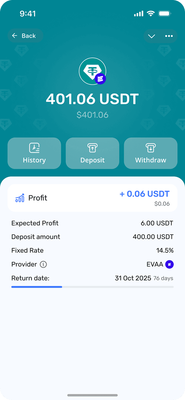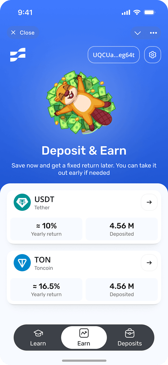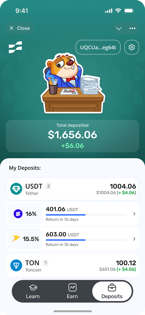 FIVA — это простое приложение для сбережений, предлагающее фиксированную прибыль от ваших цифровых денег в Telegram. Зарабатывайте до 15 % годовой прибыли на долларах США и 10 % на TON с гарантированной доходностью и отсутствием необходимости в сложных стратегиях. Просто внесите свои деньги и наблюдайте, как они растут по предсказуемым фиксированным ставкам. Разработанная для миллионов пользователей Telegram, FIVA делает получение дохода таким же простым, как использование обычного сберегательного счета. Начните получать фиксированную прибыль от своих цифровых денег сегодня с помощью первого сберегательного приложения Telegram.