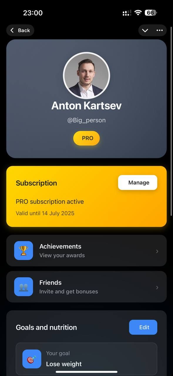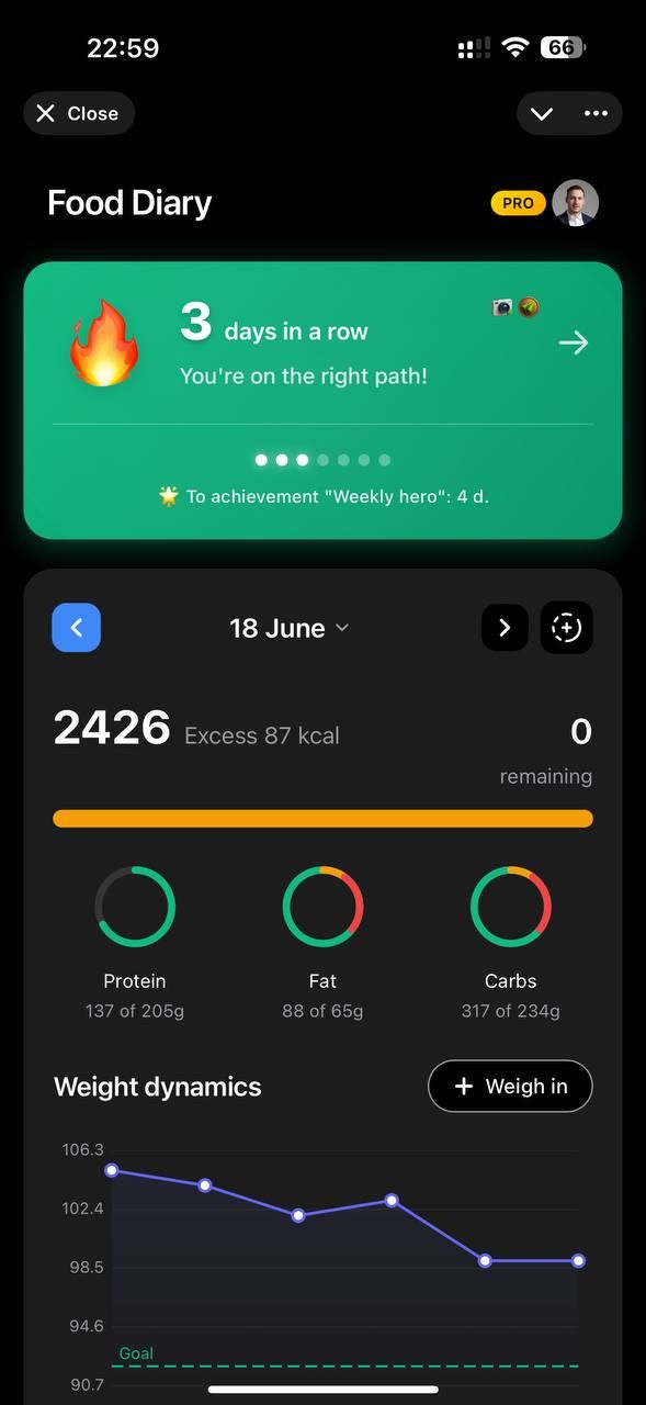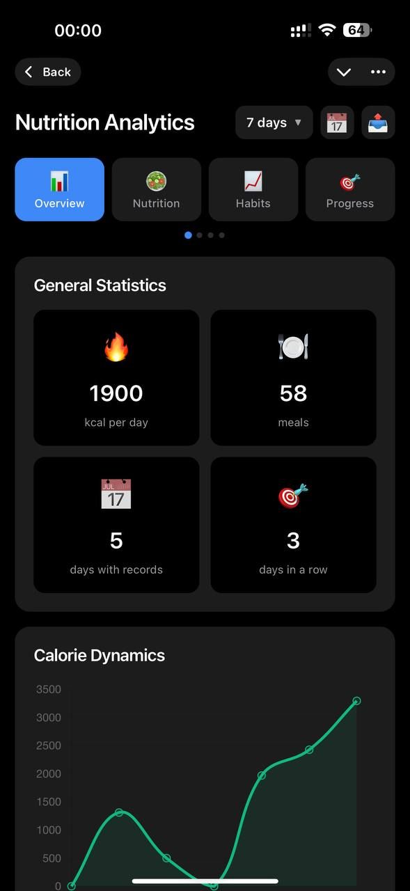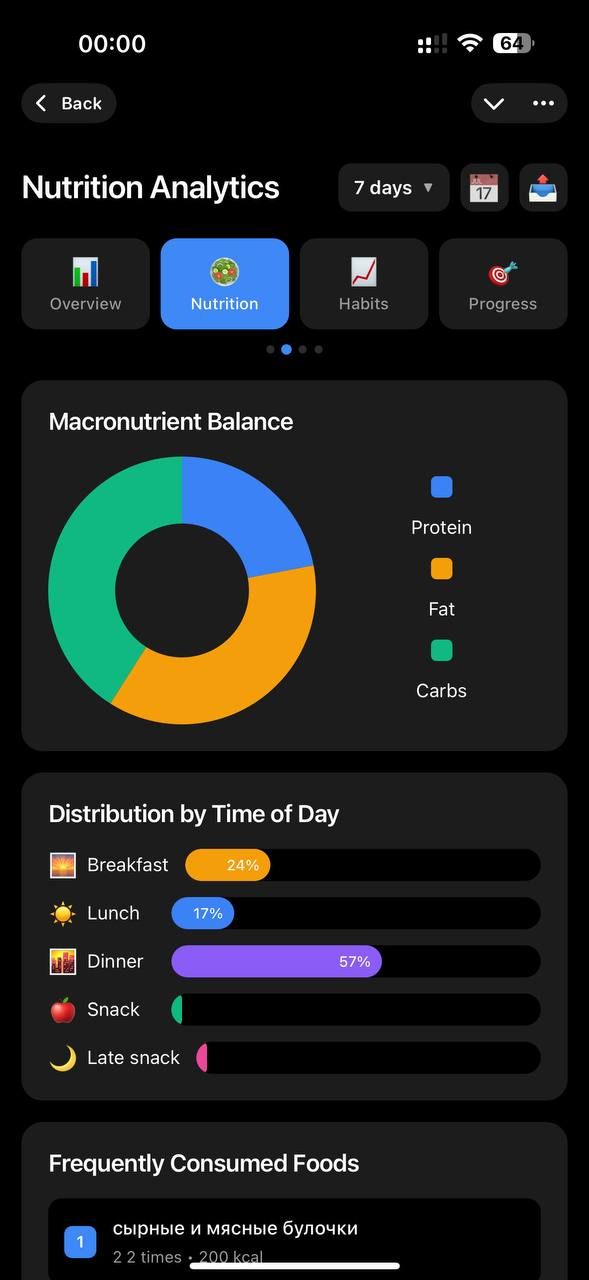 Ведите личный дневник питания, добавляйте несколько блюд в одно сообщение, экспортируйте аналитику в CSV и получайте советы от AI-консультанта по питанию.