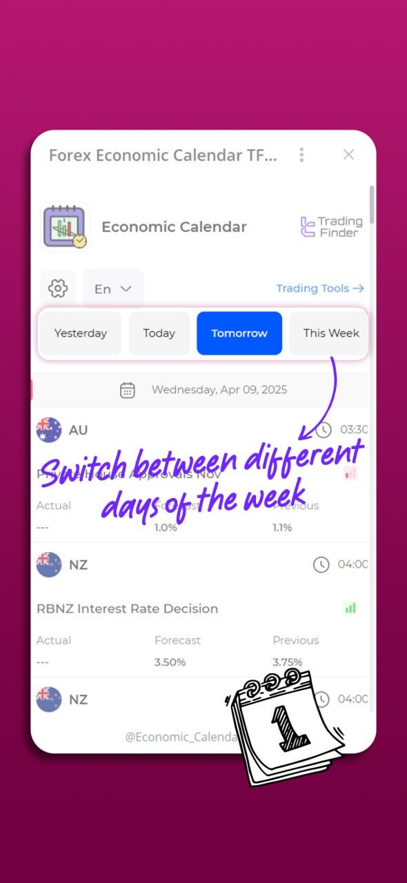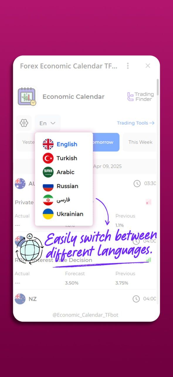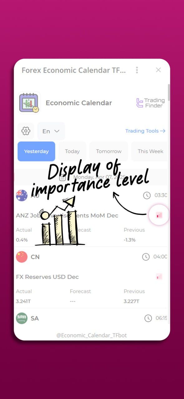 Будьте впереди на рынках с помощью экономического календаря TFLab Events Telegram Mini App. В динамичном мире торговли своевременная и точная информация имеет решающее значение. Расширение Chrome «Экономический календарь TFLab Events» — ваш незаменимый инструмент для получения информации о ключевых экономических событиях, которые влияют на рынки Форекс, Криптовалюты и Фондовые рынки. Это расширение предоставляет в режиме реального времени обновленную информацию об экономических событиях из более чем 20 стран, включая такие крупные экономики, как США, еврозона, Великобритания, Австралия и другие. Независимо от того, отслеживаете ли вы данные о занятости, решения по процентным ставкам или данные о ВВП, экономический календарь TFLab гарантирует, что вы всегда будете в курсе. Уровни воздействия