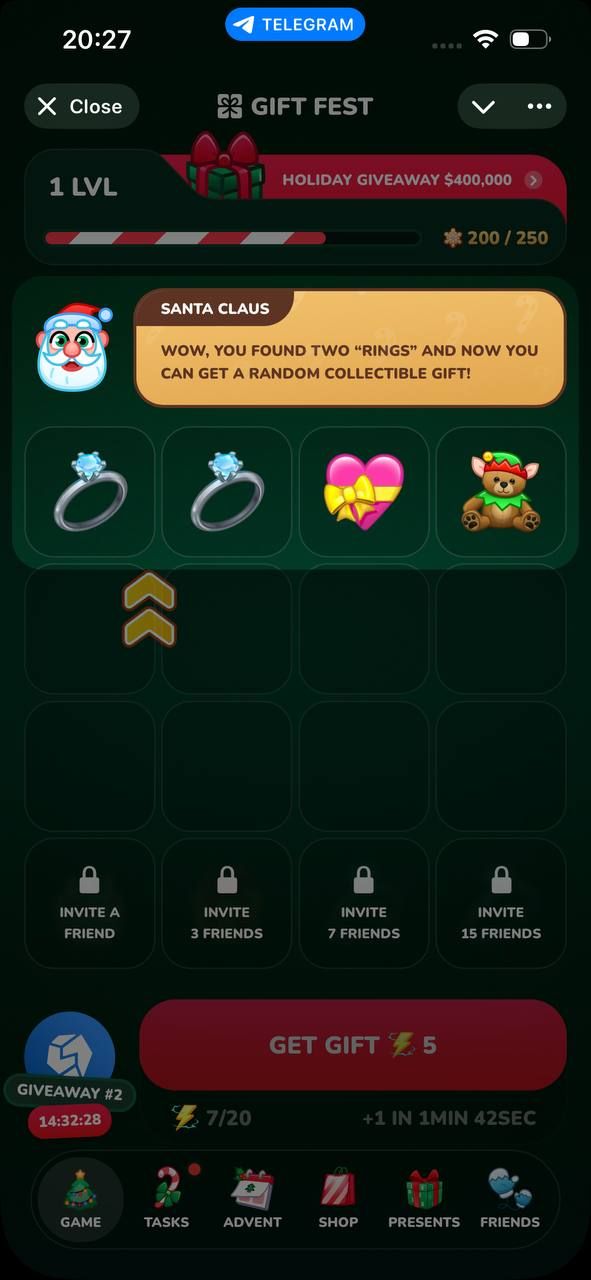 Играйте и объединяйте подарки, выполняйте задания и участвуйте в еженедельных розыгрышах.