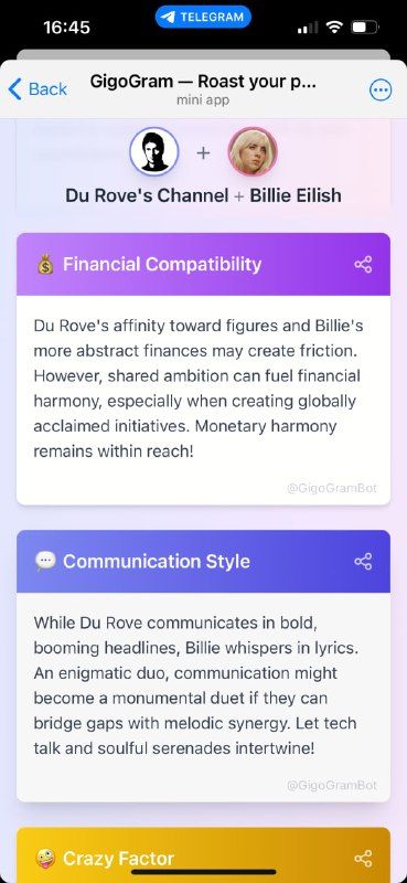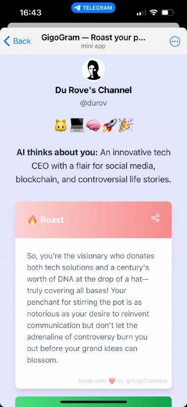 GigoGram — это ваш ростер Telegram на базе искусственного интеллекта с нулевым охлаждением. Он просматривает профили, каналы и группы с дикой точностью, копаясь в биографии, именах пользователей и вибрации, о которых вы даже не подозревали. Хотите знать, насколько вы совместимы с вашим возлюбленным, судя по вашим профилям? GigoGram также предоставляет крайне забавные отчеты о совместимости. Это все нефильтровано, все для развлечения — и никто не застрахован.