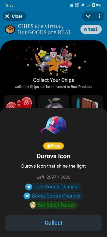 Goods — это революционное приложение Telegram, которое органично сочетает в себе удовольствие от коллекционирования цифровых фишек и радость от их обмена на реальные продукты. Наш удобный интерфейс позволяет вам легко и весело провести время.