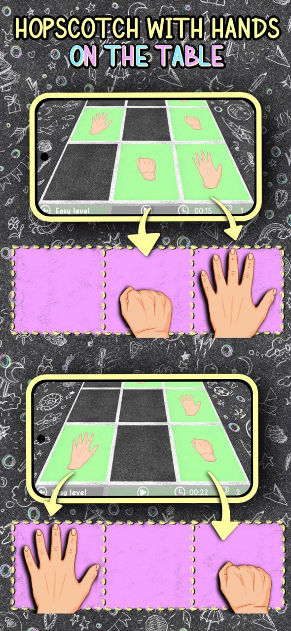HOPSCOTCH With HANDS — это веселая нейроигра, созданная для развития ваших умственных способностей. Тренируйте свое внимание, повышайте скорость реакции и наслаждайтесь игровым заданием, которое поддерживает активность и занятость вашего ума!