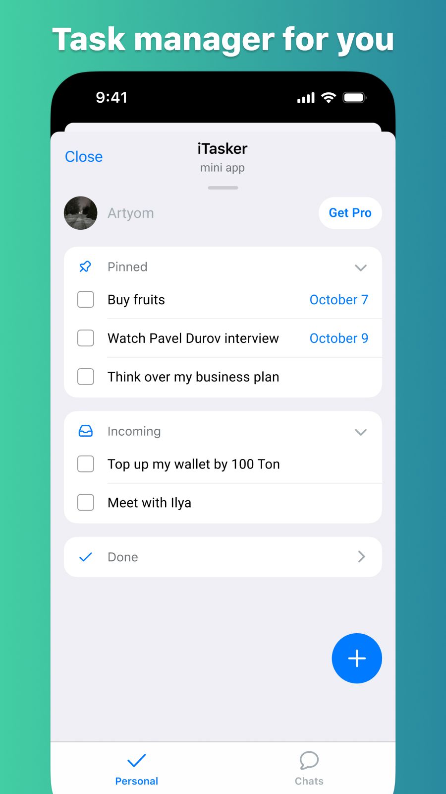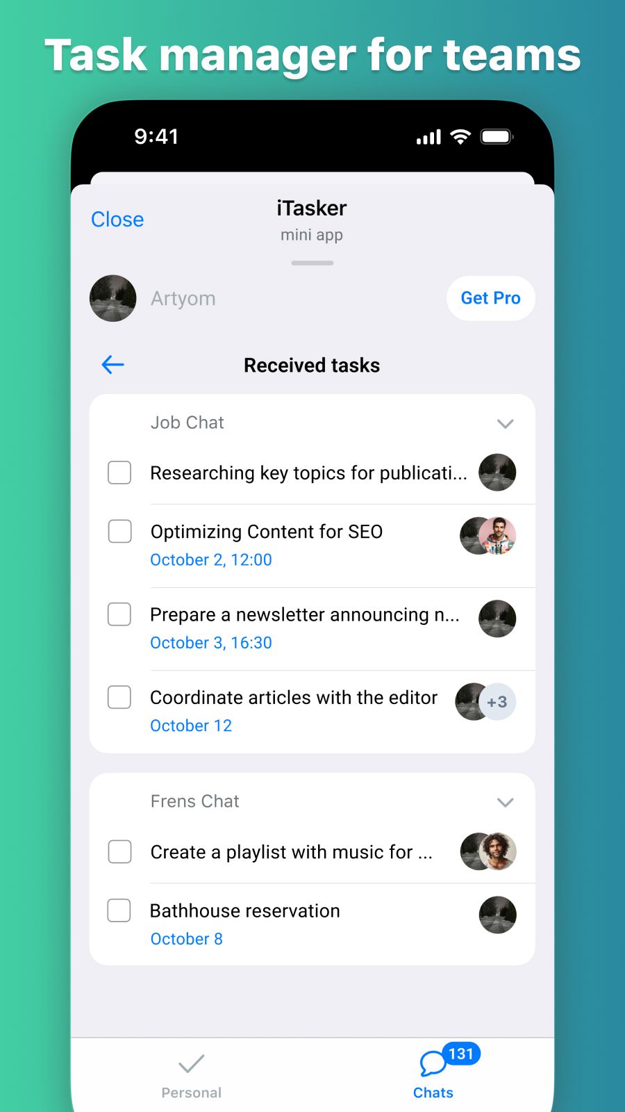 Интуитивно понятный менеджер задач. Создавайте проекты в групповых чатах без особых усилий.