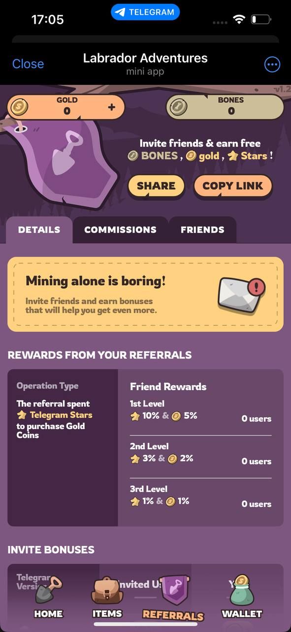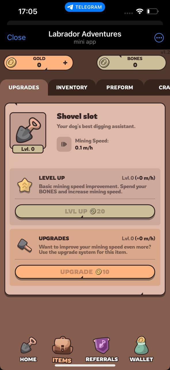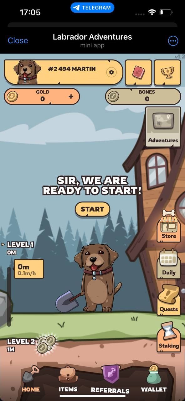 Labrador Adventures — это игра Web3 для TON. Развивайте учетную запись своего лабрадора, улучшайте свою лопату и зарабатывайте жетоны $LABR в ходе игрового процесса. Все предметы создаются посредством внутриигровых действий и продаются на внутреннем рынке между игроками. В игре предусмотрено несколько путей развития.