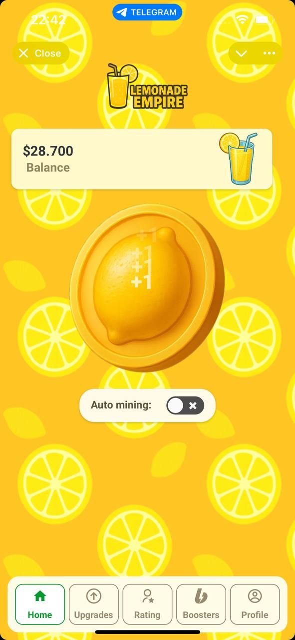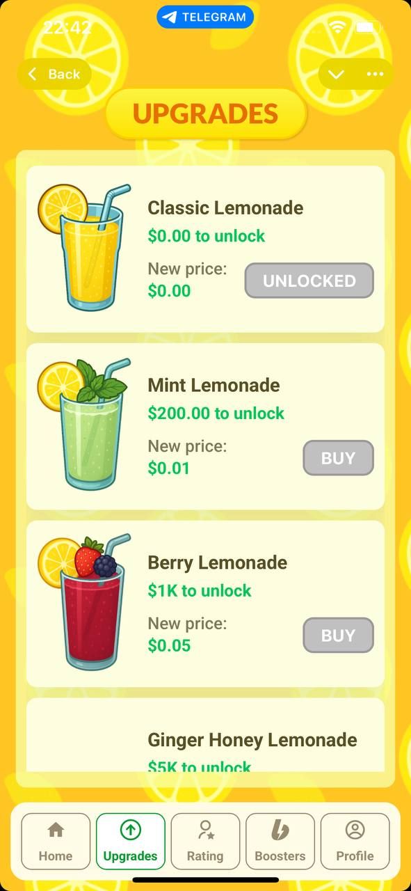 Добро пожаловать в Lemonade Empire — потрясающую игру, в которой ваш стенд с лимонадом — это только начало бизнес-империи! Создавайте, улучшайте и автоматизируйте свой путь к вершине, даже когда вас нет дома.