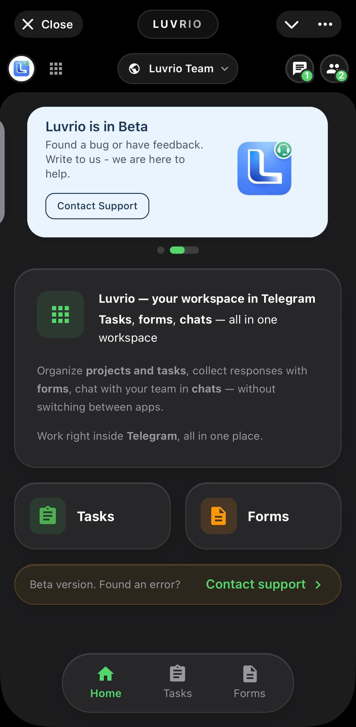 Luvrio — это набор рабочих инструментов, встроенных непосредственно в Telegram.