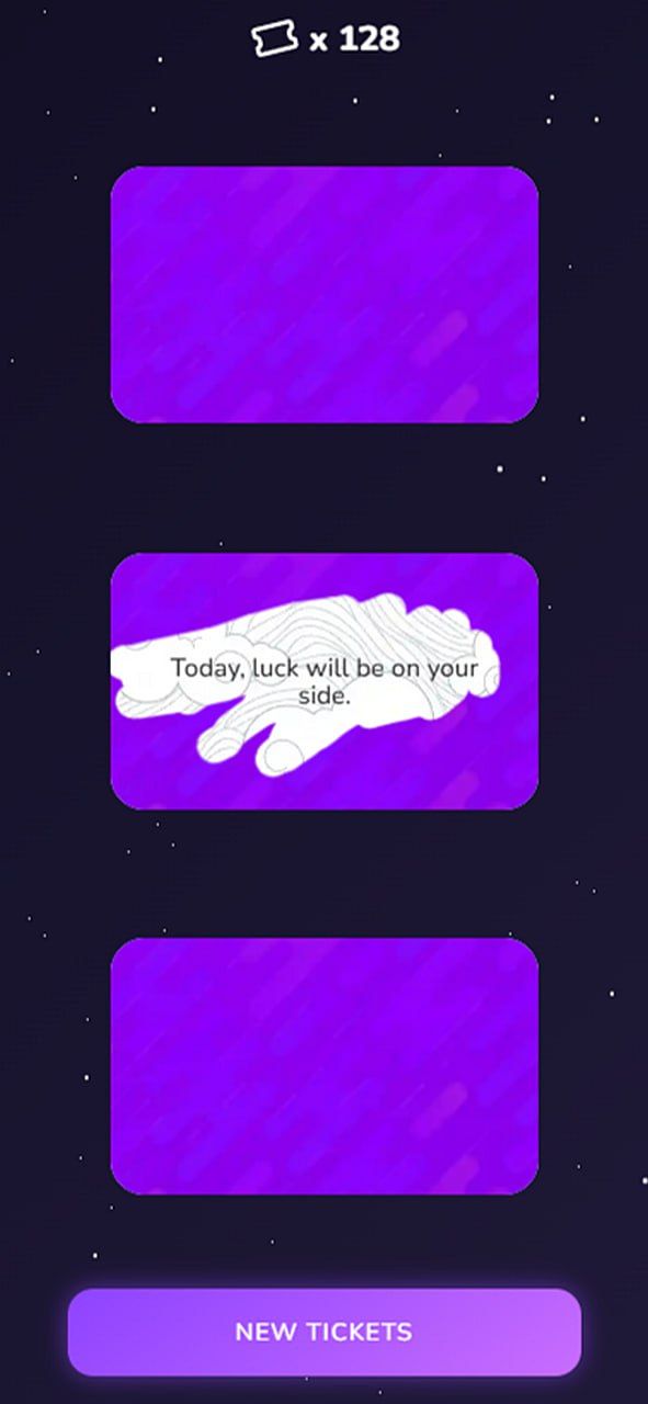 Сотрите защитный слой на билетах, чтобы узнать свое будущее. Веселое и простое в использовании мини-приложение внутри Telegram.