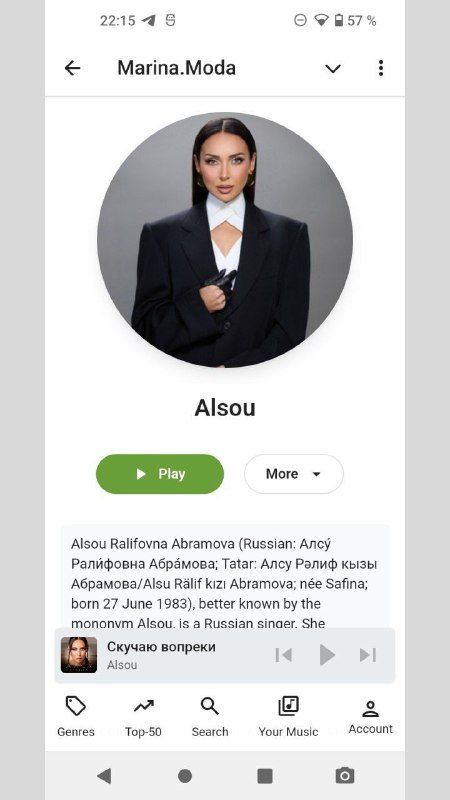Marina.Moda — это не просто модный бренд, а проект, который объединяет инновации и современные технологии для создания уникальных решений в области моды в музыке и в музыкальной индустрии в целом.