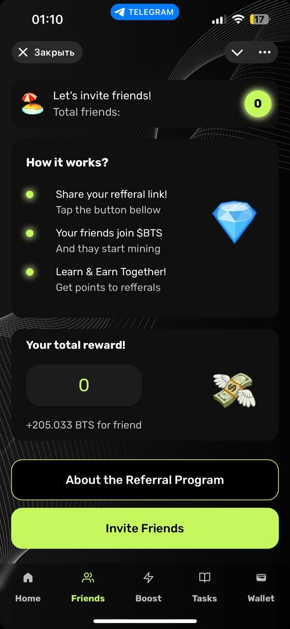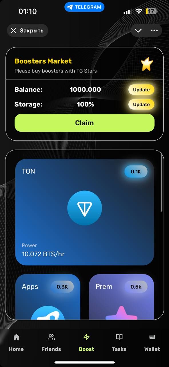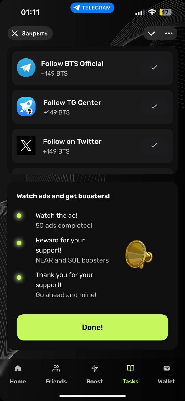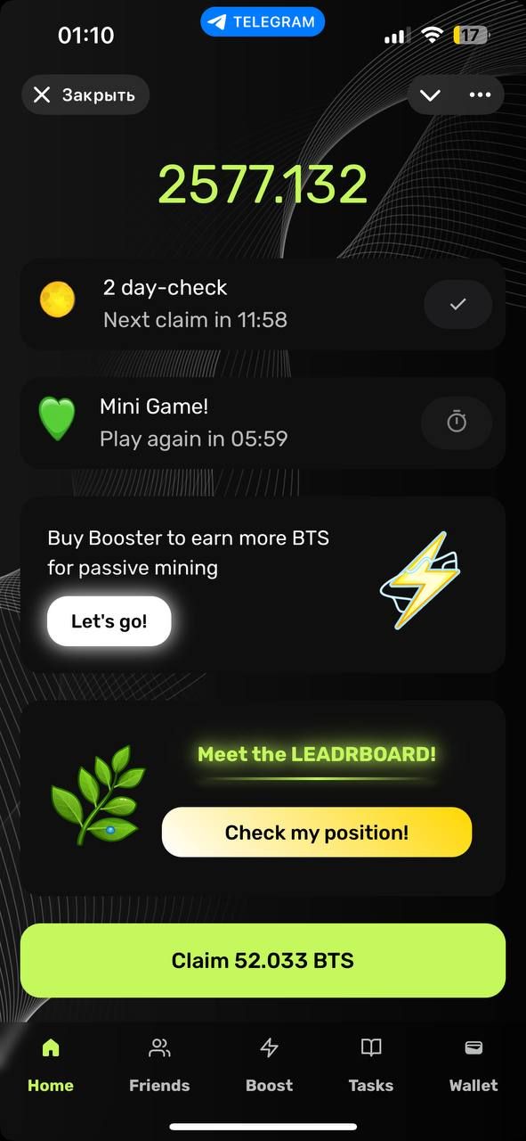 «Mine BTS» — это приложение для майнинга внутри Telegram, целью которого является создание совершенно новой криптовалюты в блокчейне TON.