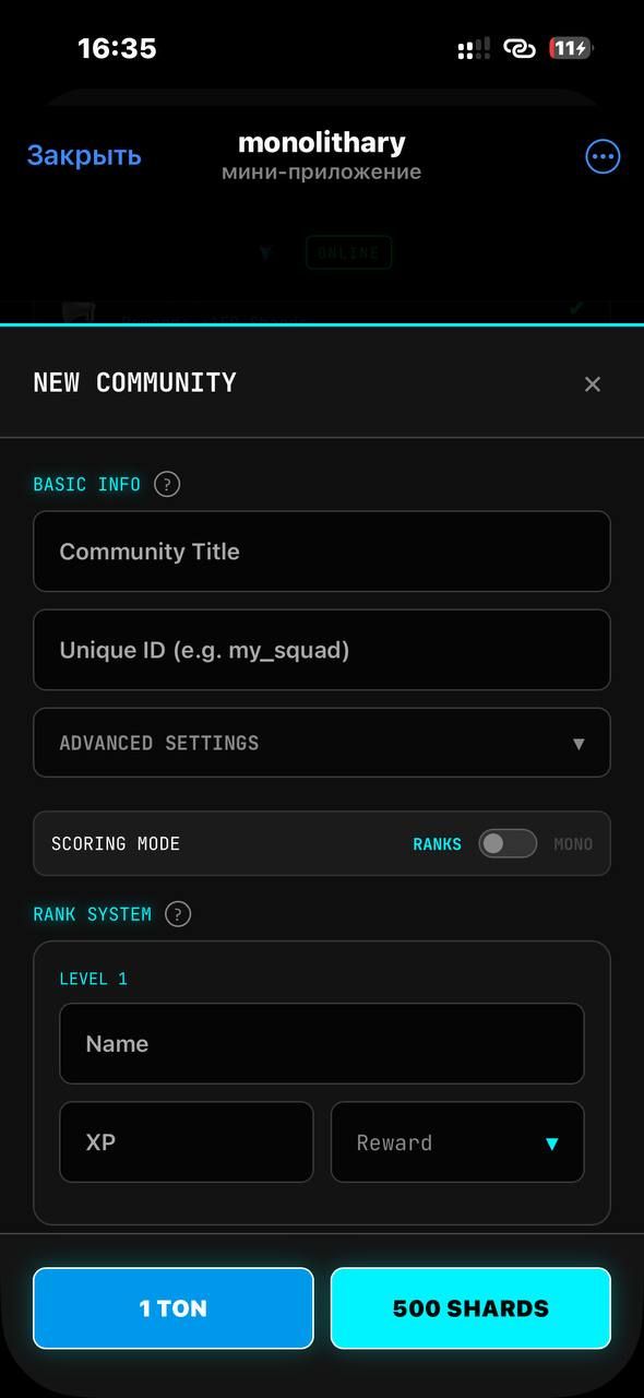 Monolithary — это утилита геймификации, предназначенная для повышения вовлеченности в сообществах Telegram. Он превращает стандартные групповые чаты в интерактивные возможности, отслеживая активность пользователей и начисляя очки опыта. Владельцы сообществ могут настраивать собственные системы развития, выбирая между визуальными рангами для статуса или системой оценок MONO, предназначенной для интеграции с экономикой. В приложении есть глобальная сетка, отображающая наиболее активные сообщества, личный инвентарь для цифровых наград и режим гостевого предварительного просмотра, который позволяет пользователям просматривать статистику сообщества и списки лидеров без необходимости предварительного присоединения к чату. Monolithary предоставляет необходимые инструменты для создания активных, лояльных и вознагражденных сообществ.