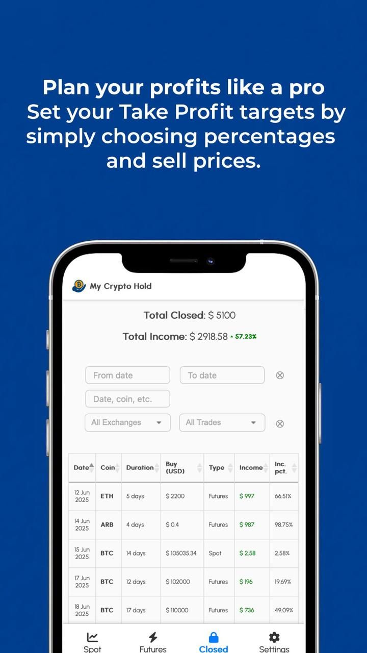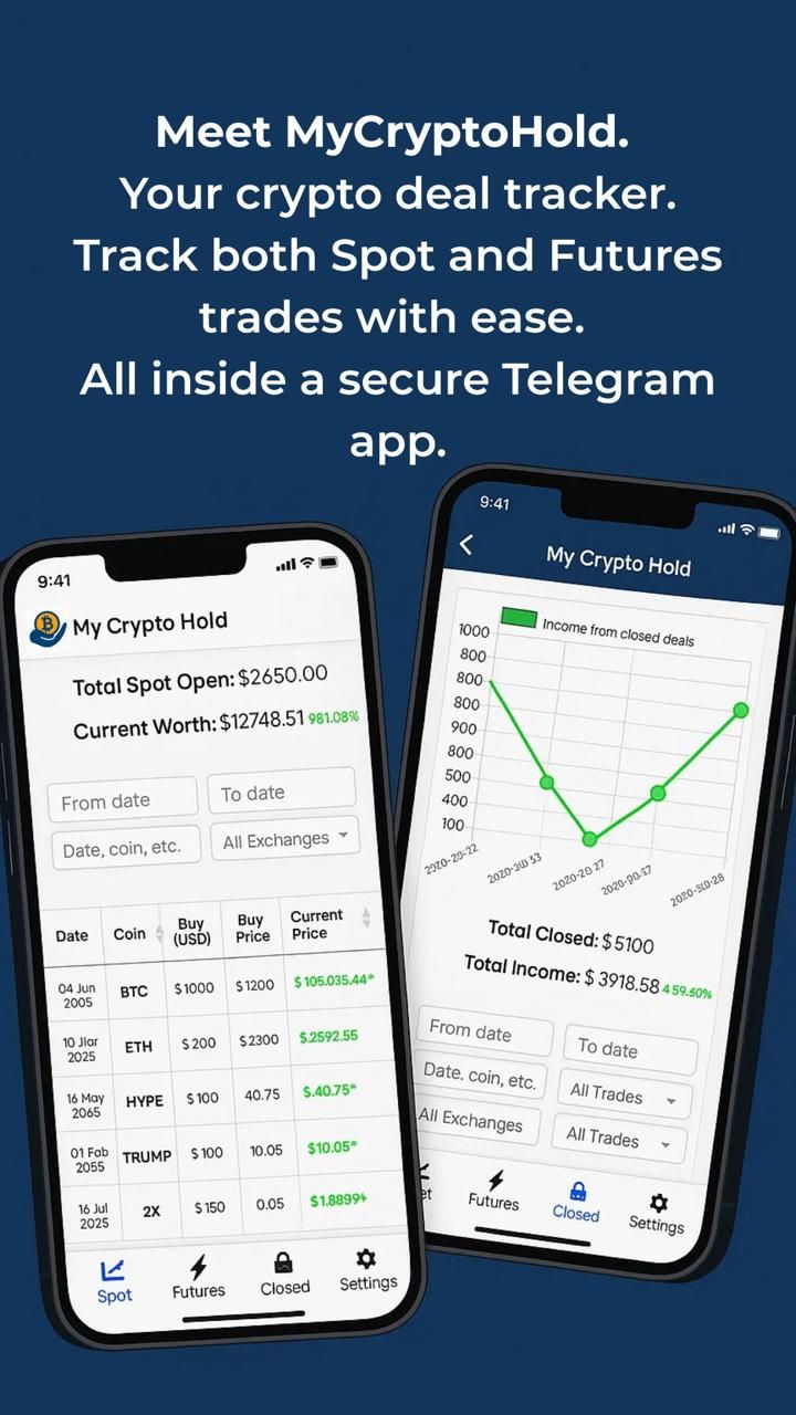 Вы торгуете на биржах. Устали подсчитывать свой доход? Все еще используете электронные таблицы или разрозненные документы? Экономьте время — MyCryptoHold — ваше универсальное приложение Telegram. Отслеживайте сделки, инвестиции и доходы в долларах США. Фильтрация доходов по диапазону дат. Посмотрите, как долго вы удерживали каждую позицию (в днях). Следите за ценами на криптовалюту в реальном времени. Место