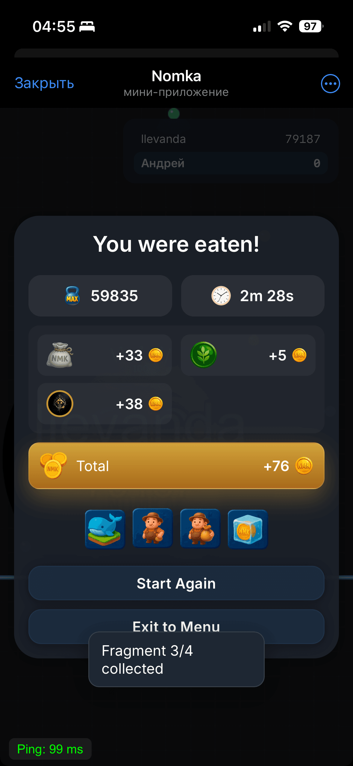 Nomka — быстрая соревновательная аркада. Вы выходите на общую арену, собираете энергию, развиваетесь и обыгрываете соперников, используя тайминг и умные движения. Активность вознаграждается NMK, а VIP-квесты открывают комнаты с усиленным фармом. Матчи короткие и подходят для быстрых сессий, а таблицы лидеров, ежедневные награды и личные рекорды помогут вам оставаться в игре. Элементы управления просты и удобны для мобильных устройств, а косметические скины позволяют настроить внешний вид, не влияя на баланс. Игра поддерживает несколько языков и без проблем работает внутри Telegram. Идеально подходит для быстрой игры и дружеских соревнований.