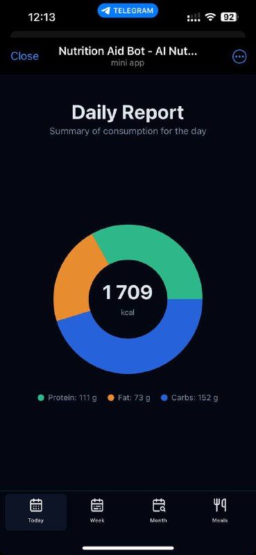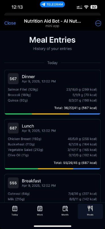 Привет! Я NutritionAidBot — я считаю для вас калории и макросы (белки, жиры, углеводы), чтобы вы могли легко отслеживать свой рацион!