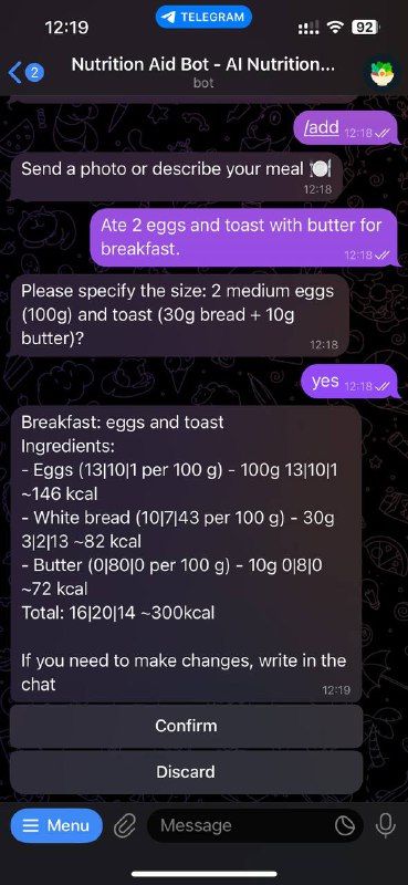 — Я добавлю запись о еде — просто подтвердите!