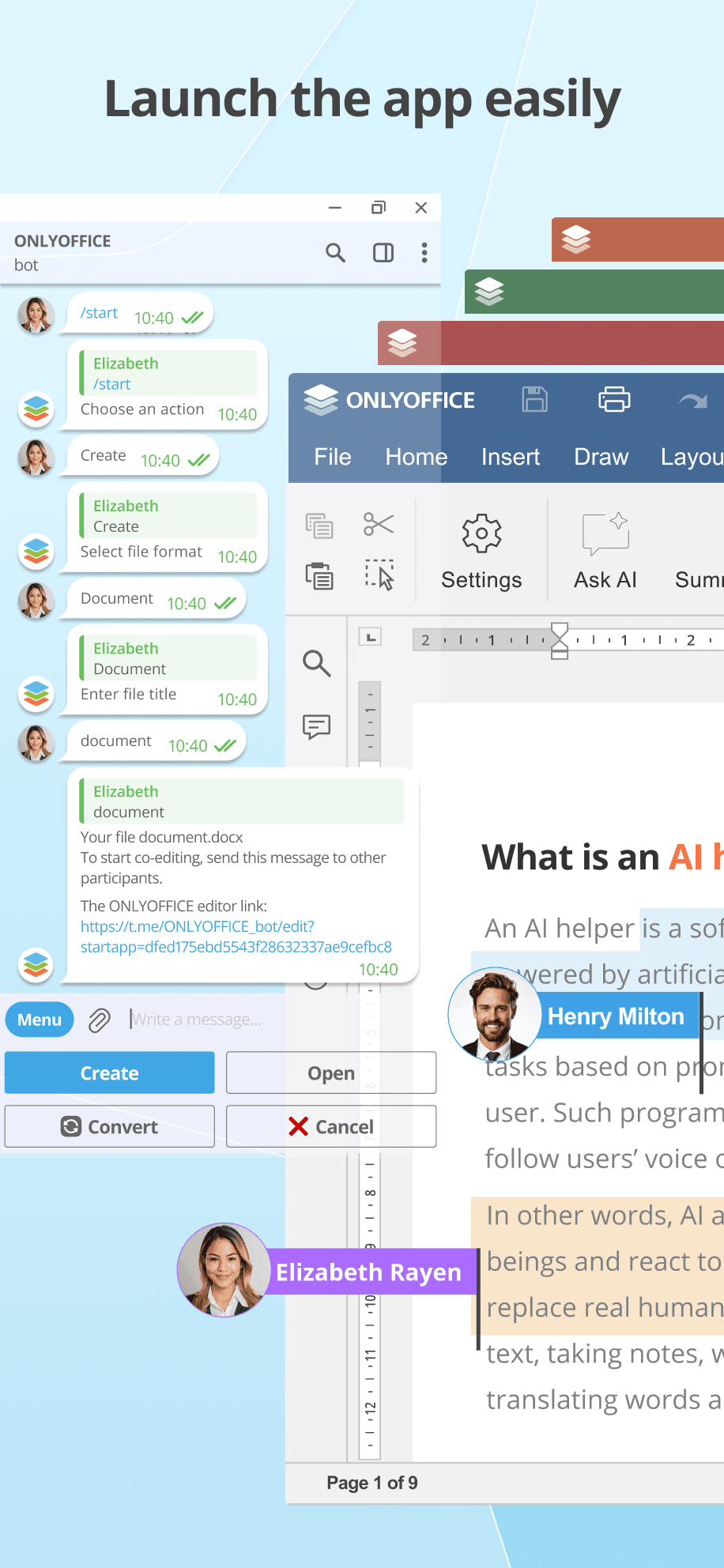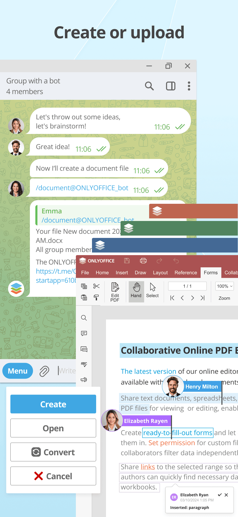 Бот ONLYOFFICE может создавать, открывать и конвертировать офисные файлы