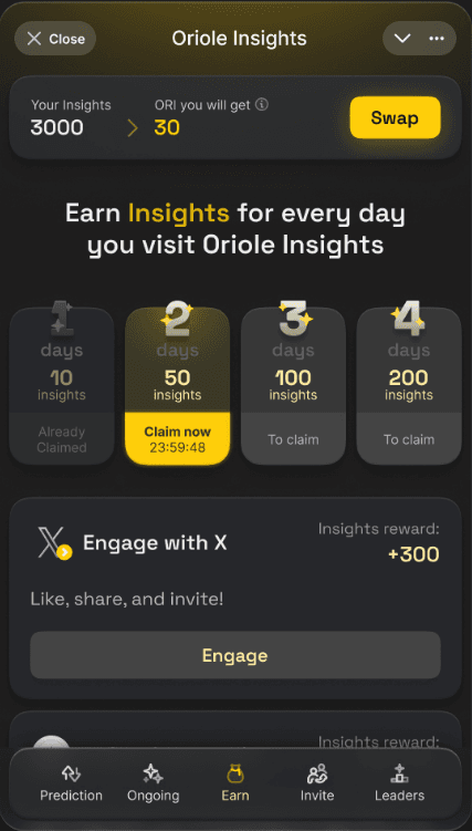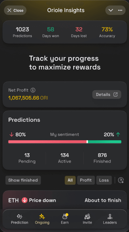 Oriole Insights — это игровая платформа прогнозирования, использующая коллективный разум. Пользователи прогнозируют тенденции активов и результаты событий, повышая свою репутацию и доверие, а также повышая известность в сообществе.