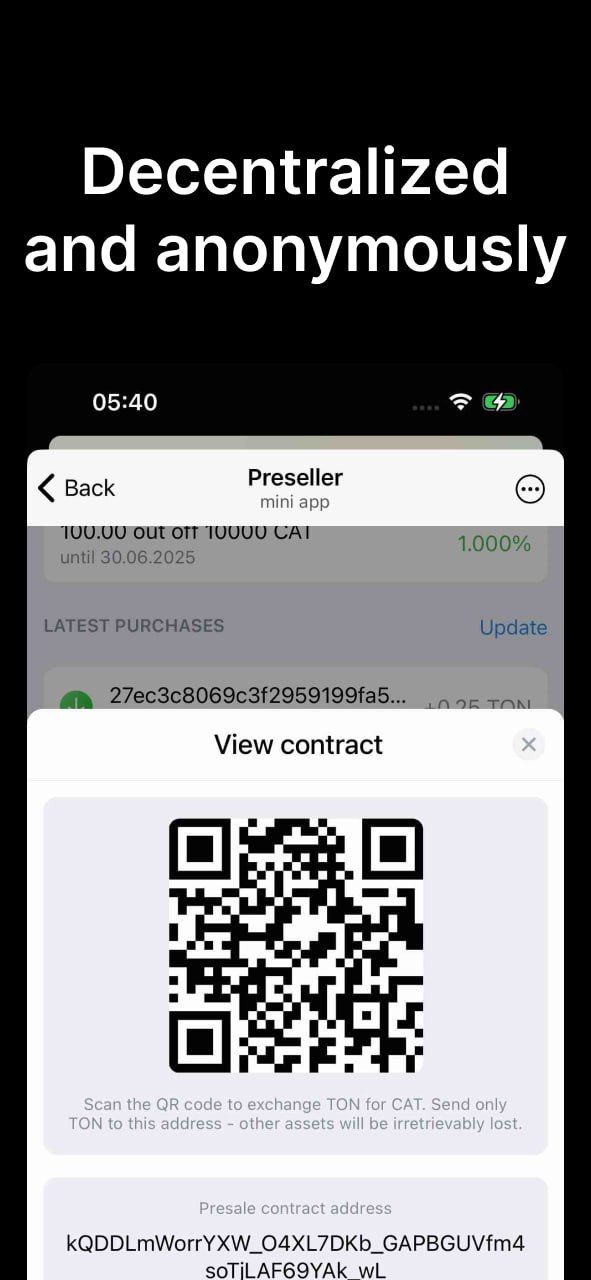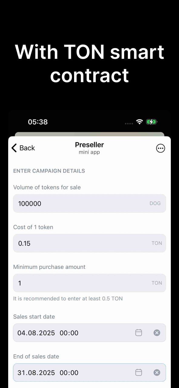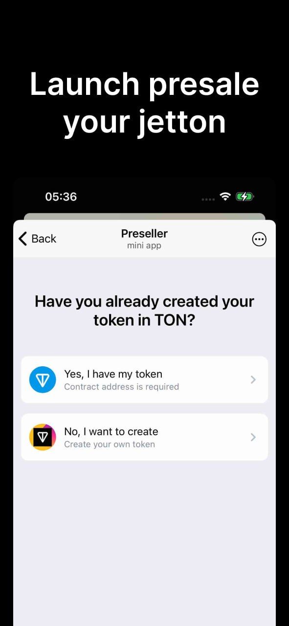 Наше децентрализованное приложение позволяет любому пользователю создать и запустить предпродажу Jetton на блокчейне TON без посредников. Вся логика работает на смарт-контрактах, обеспечивая максимальную безопасность и прозрачность.