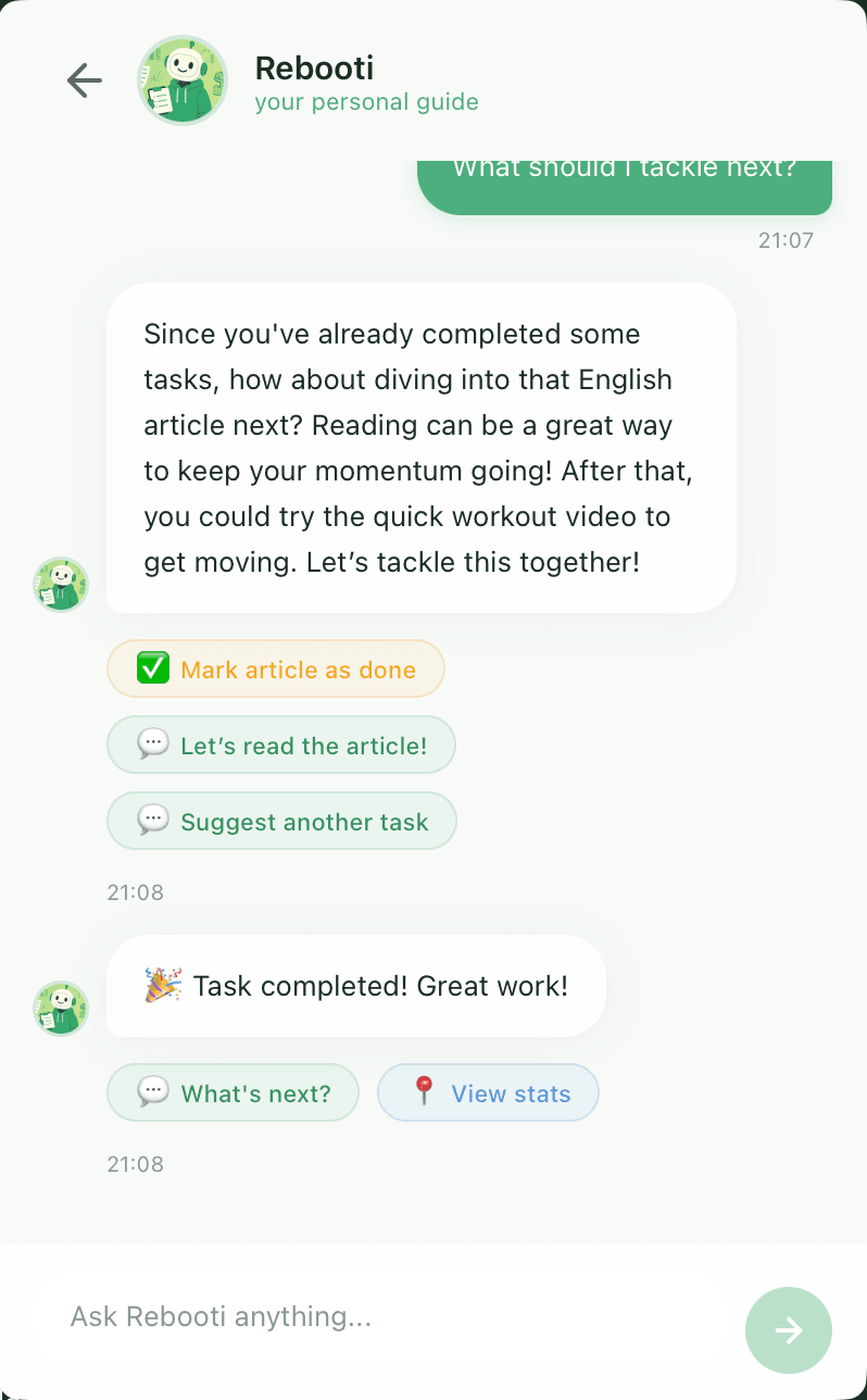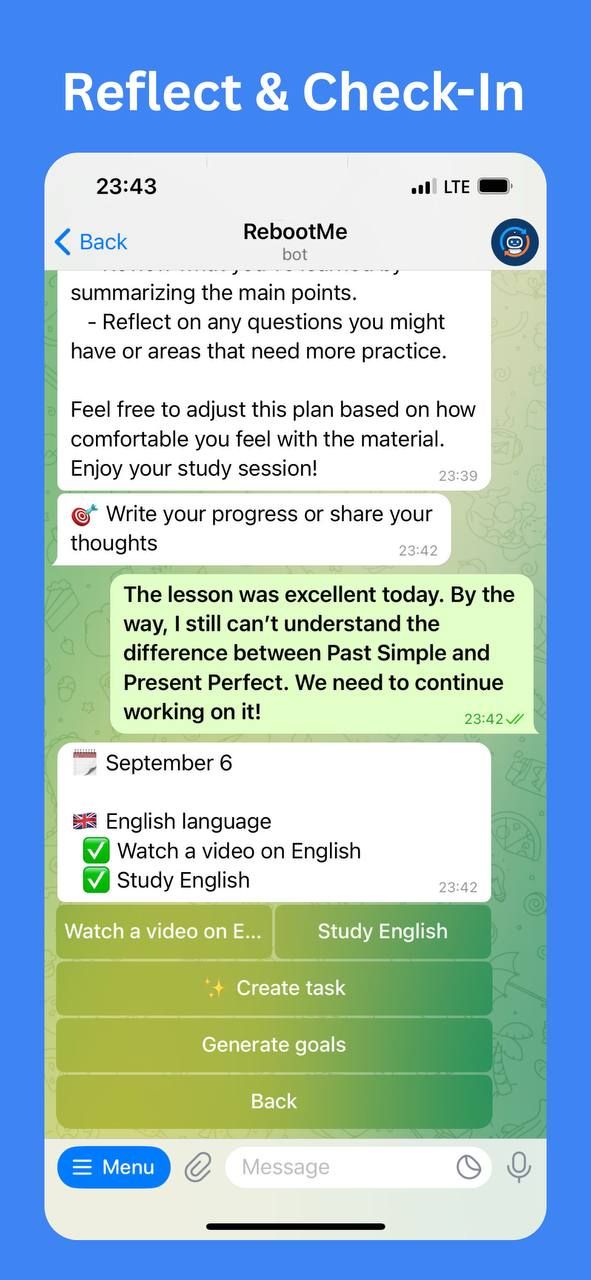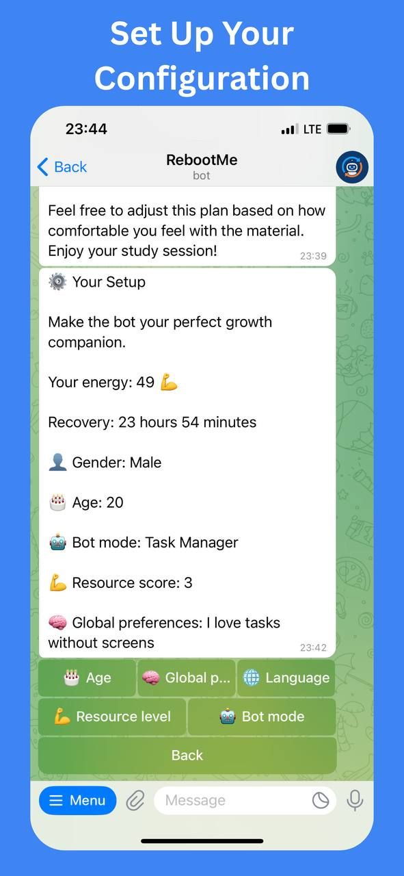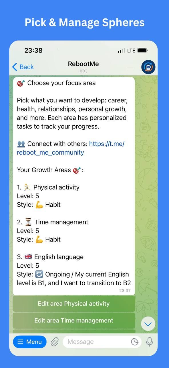 RebootMe — Telegram-бот для саморазвития и осознанной жизни.