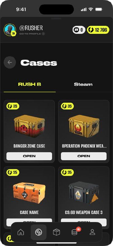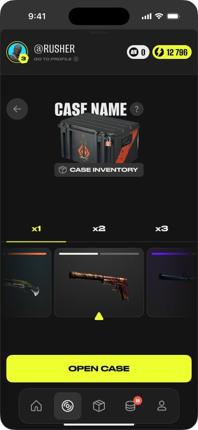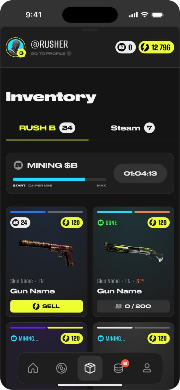 Приложение RUSH B объединяет две основные тенденции: открытие кейсов CS2 и майнинг токенов! В приложении используется знакомый механизм открытия кейсов из CS2, но с ключевыми преимуществами. Никаких реальных денег не требуется — вместо этого используйте заработанную валюту $RUSH.
