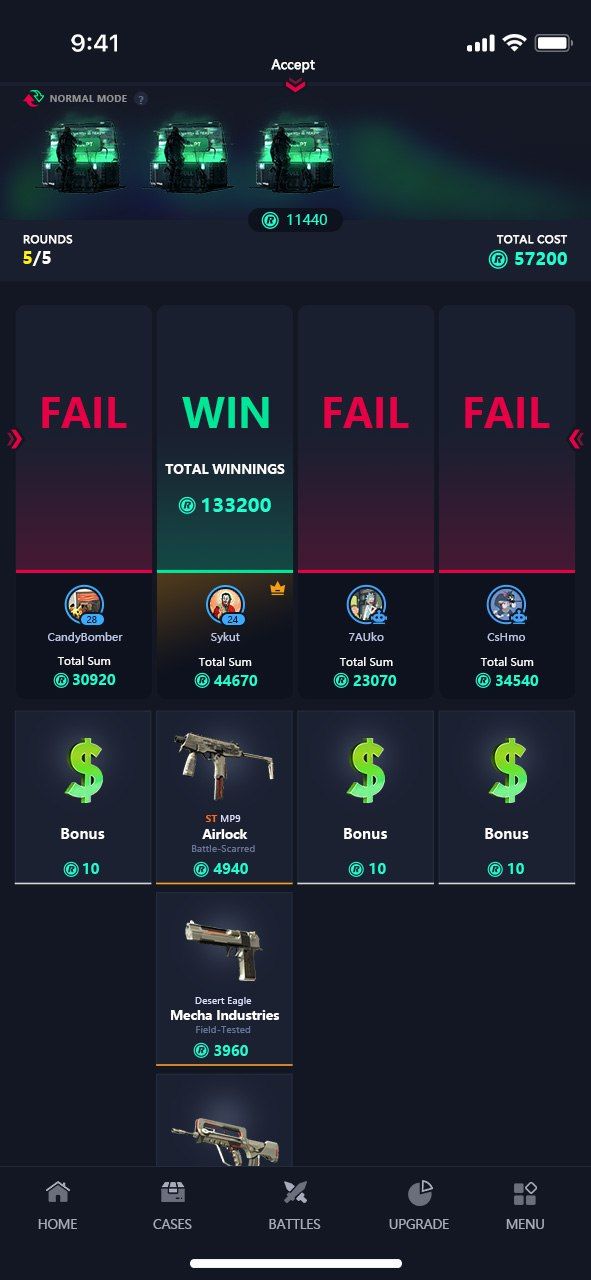 Открывайте кейсы со скинами CS2 бесплатно каждый день, и скины можно будет вывести непосредственно на вашу учетную запись Steam. Кроме того, существуют различные игровые режимы, такие как битвы за скины, улучшения и обмены, позволяющие вам получить более ценные и редкие внутриигровые скины.