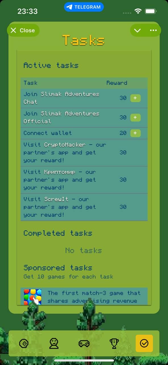 Погрузитесь в захватывающий мир игр в один клик, где каждое нажатие приближает вас к вершине! Slimak Adventures — это платформа GameFi, которая вознаграждает игроков за их активность и результативность. Играйте в разнообразные простые, но захватывающие игры и зарабатывайте очки за свои достижения.