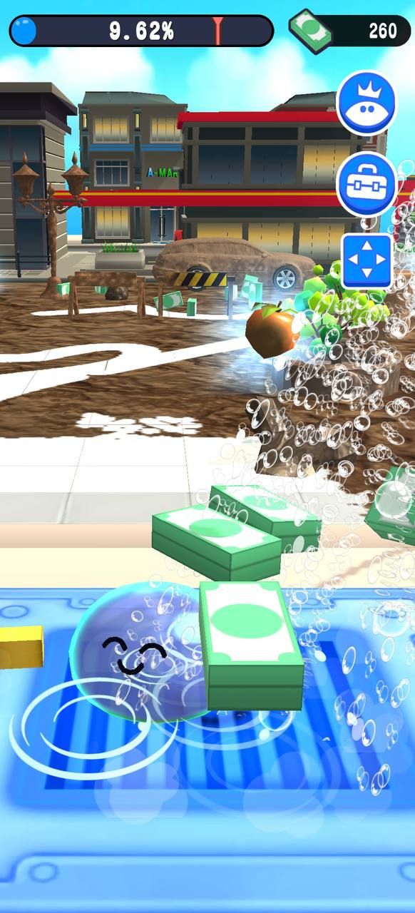 Используйте душ, чтобы смыть грязь, чтобы заработать деньги, и продолжайте уборку, пока город не станет безупречным!