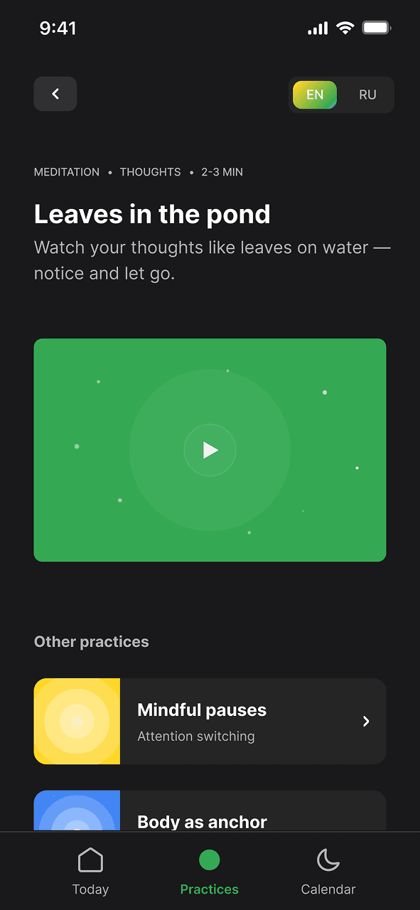 Spokspace — это ваш тихий уголок в Telegram — простой инструмент, позволяющий сделать паузу, перевести дух и мягко восстановить связь с самим собой. Внутри вы найдете короткие практики для моментов, когда вы чувствуете себя подавленным или отвлеченным. Ничего сложного, никакого давления — всего несколько минут, чтобы замедлиться и провериться.