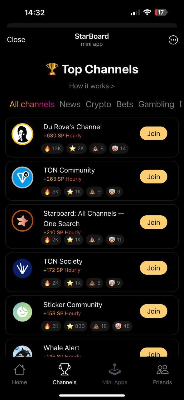 Не знаете, где найти настоящие качественные каналы Telegram? Добро пожаловать в StarBoard — платформу поиска каналов с фильтрами по категориям и рейтингами сообщества. Найдите каналы высшего уровня, честно оцените их и попутно зарабатывайте Star Points. Поднимите лучшие каналы наверх и помогите выявить плохие. Это ваш канал. Ваши правила.