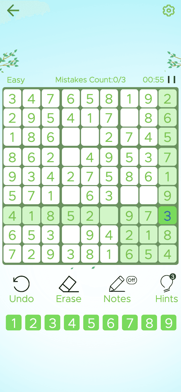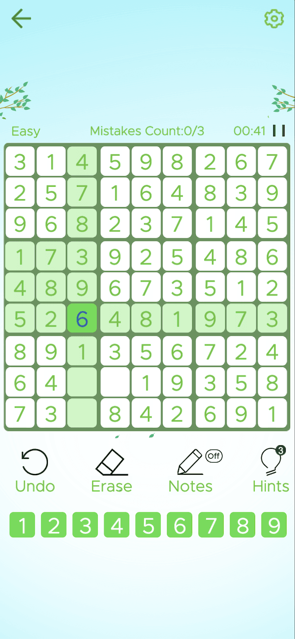 Погрузитесь в классическую игру-головоломку Судоку и бросьте вызов своему разуму! Эта игра с сеткой из 81 квадрата проверит вашу способность заполнять пробелы цифрами от 1 до 9, не допуская повторений в строках, столбцах или регионах. Являетесь ли вы новичком или опытным мастером судоку, каждая головоломка представляет собой интересную задачу. Улучшите свое логическое мышление и концентрацию, наслаждаясь расслабляющей игрой. Сможете ли вы решить каждую головоломку и набрать наибольшее количество очков? Начните решать прямо сейчас и посмотрите, как далеко вы сможете зайти!