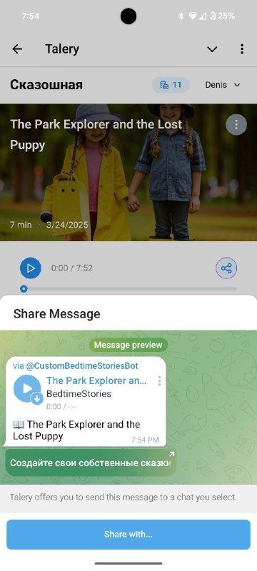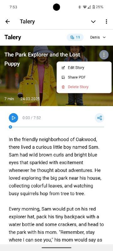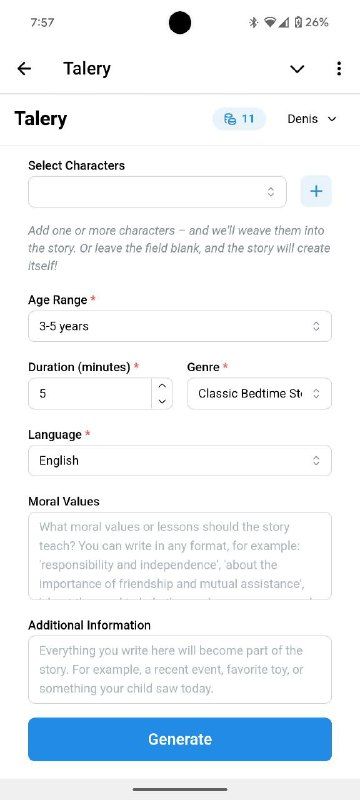 Talery — это приложение, которое позволяет создавать персонализированные сказки для ваших детей с собственными персонажами, уроками морали и сеттингом.