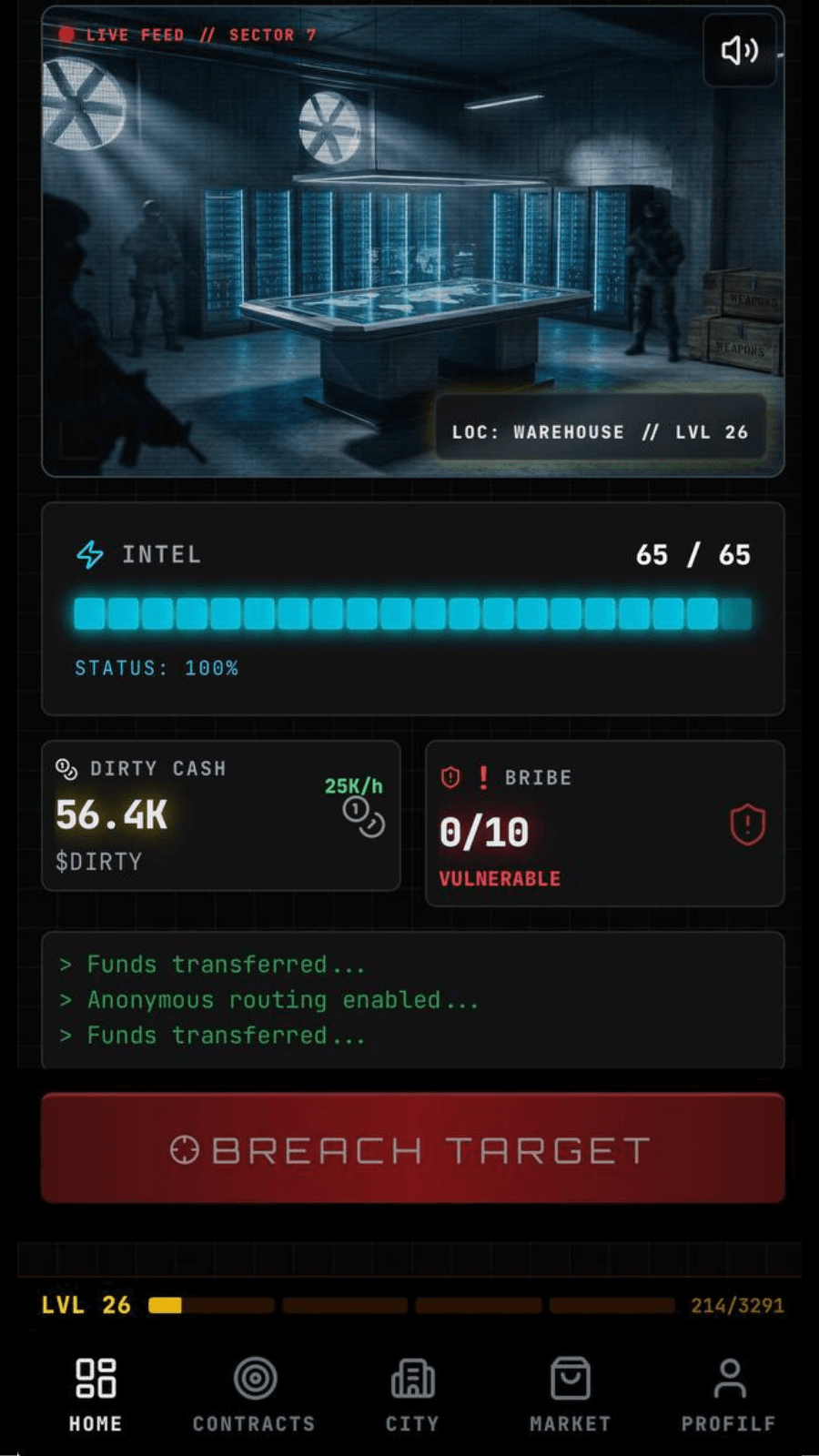 Расширьте свое влияние, нанимая оперативников через реферальную систему, и используйте рынок для приобретения стратегических преимуществ, таких как щиты и повышение производительности. Испытайте острые ощущения от цифровой подпольной экономики и докажите, что у вас есть все необходимое, чтобы достичь высшего уровня.